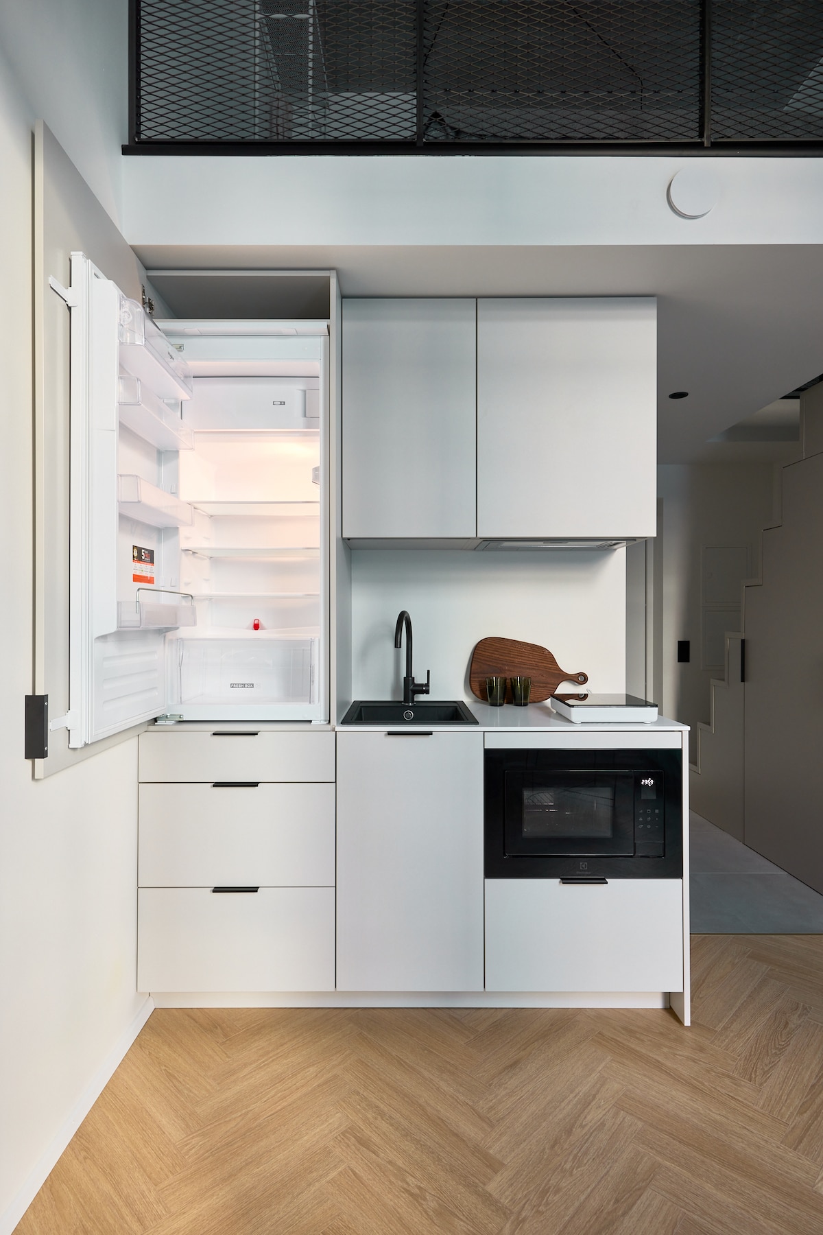 Glid från sovrummet till bastun och vidare till den öppna terrassen i denna sofistikerade lägenhet med slående moderna detaljer. Fönstren sträcker sig upp till 5 meter höga tak och cirkulära speglar glittrar i ljuset. Parkettgolv och fluffiga textilier ger djup och värme. Loftet ligger bara några minuter från Gamla stan i ett elegant lägenhetshus, precis intill det kreativa navet Kultuurikatel. Utforska de trendiga, bohemiska distrikten Telliskivi och Kalamaja och den unika gamla stan.