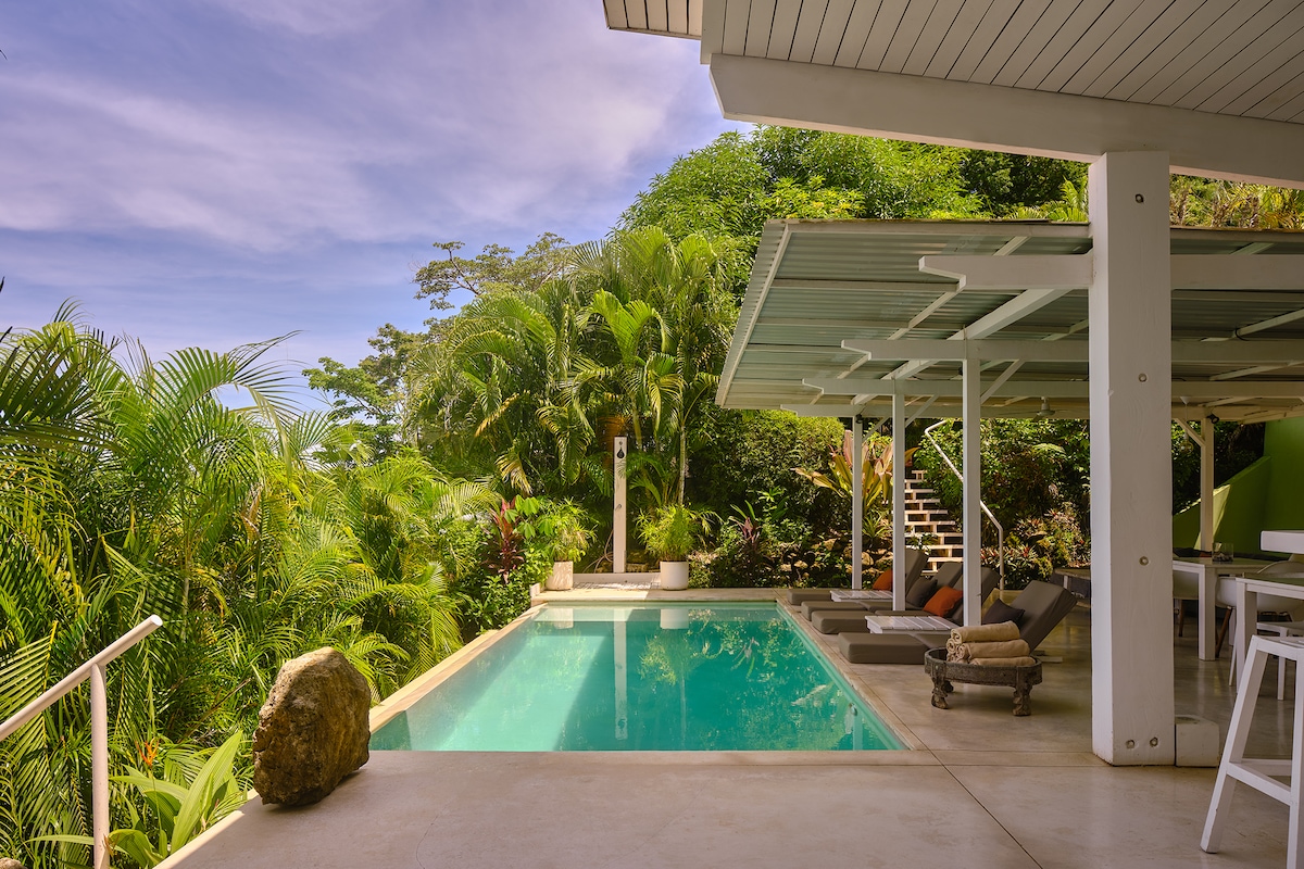 Fly till vår tropiska strandvilla som ligger vid stranden på de lugna vågorna i Tambor Beach. Omgiven av frodig djungel, apor och papegojor är det den perfekta blandningen av natur och komfort. Ta ett dopp i den privata djungelpoolen eller utforska den stora stranden och dess naturliga skatter. Upplev Robinson Crusoe-vibbar med alla moderna bekvämligheter. Perfekt för par, digitala nomader eller alla som söker en lugn semester vid stranden i Costa Rica. Ett utmärkt läge att boka dagliga utflykter från.