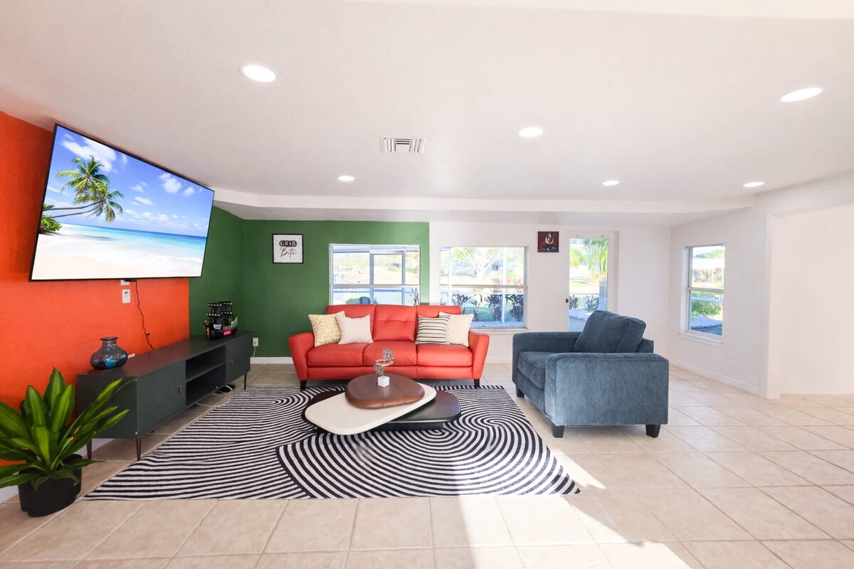 🌴 Fly från en bit av paradiset, bara några minuter från stranden och omgiven av Floridas naturliga skönhet. Detta boende vid vattnet med 2 sovrum har en privat brygga, ett fullt utrustat spelrum och ett Florida-rum med utsikt över solnedgången och en mysig kaffebar. Koppla av utomhus med en braskamin, grill och 6 loungestolar. Oavsett om du är här för att koppla av, utforska eller roa dig har detta boende allt.