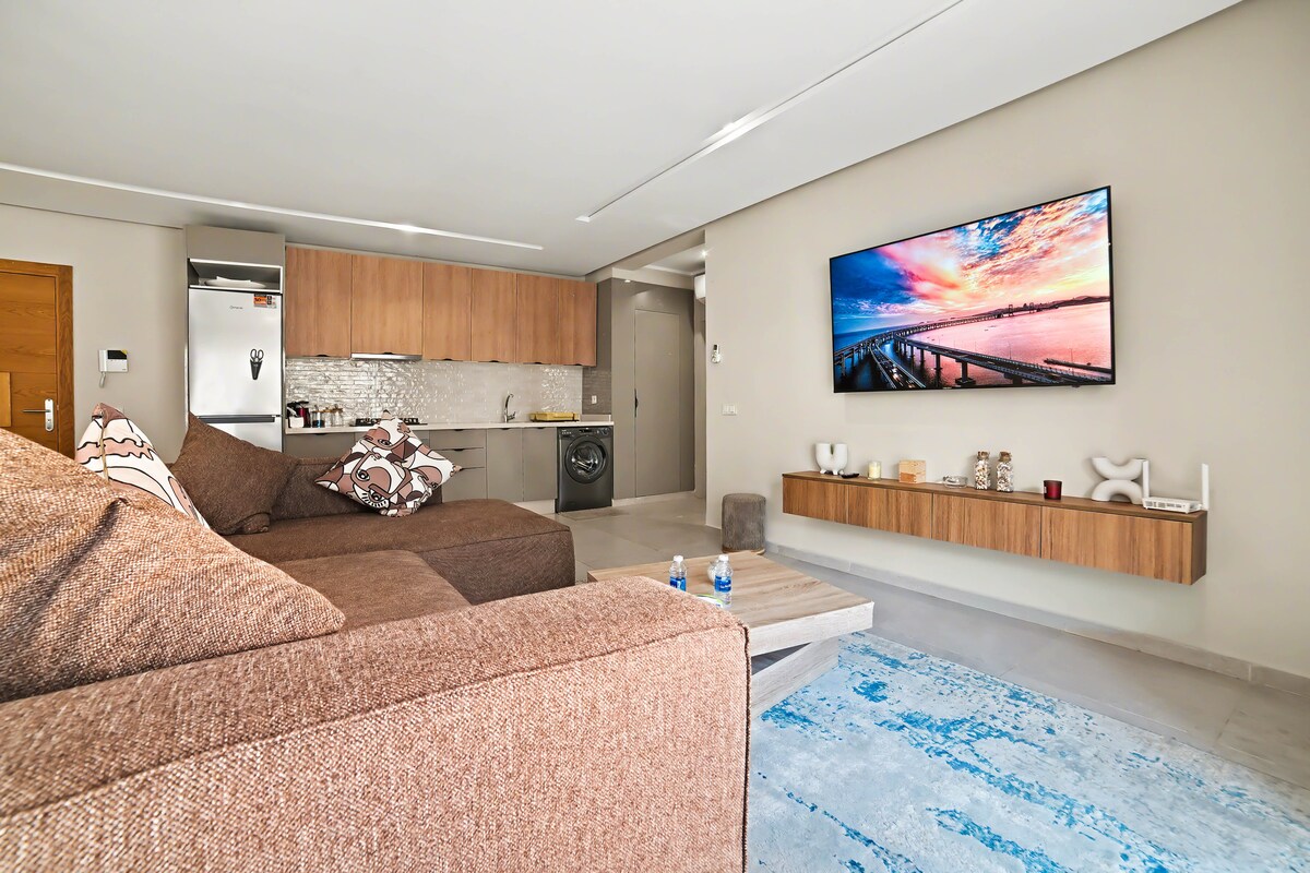 ✨ Nyrenoverad 3BR/2BA i Agadirs exklusiva Marina Complex. Perfekt för familjer eller vänner som söker en lugn, elegant vistelse. Rymlig, central och gångbar — med fullt utrustat kök, luftkonditionering i varje rum, Smart-TV och regnduschar. 🚫 Inte lämpligt för grupper av ensamstående män som vill festa 📄 Marockanska par måste uppvisa ett giltigt vigselbevis.