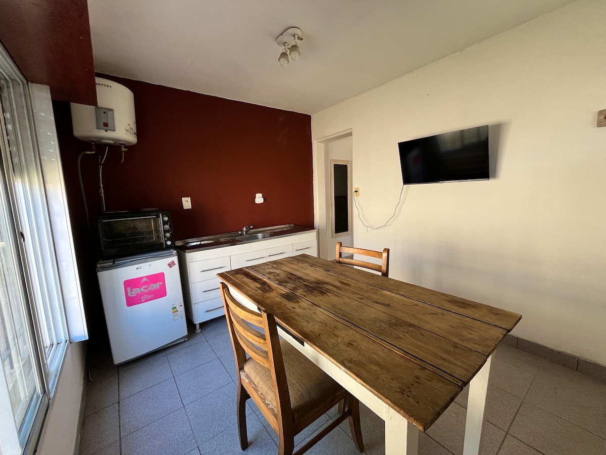 Vilohem i Tandil. 3 rum, upp till 5 personer. Stor trädgård med pool och grill, perfekt för att njuta av som familj eller med vänner. Täckt garage. Fullt utrustat kök och porslin. Larm, Wifi, kabel-TV, luftkonditionering och centralvärme i alla miljöer. Lakan och handdukar. Utrustad så att gästen kan hantera sig själv som om de var hemma. Slut på lång mars 4 nätter