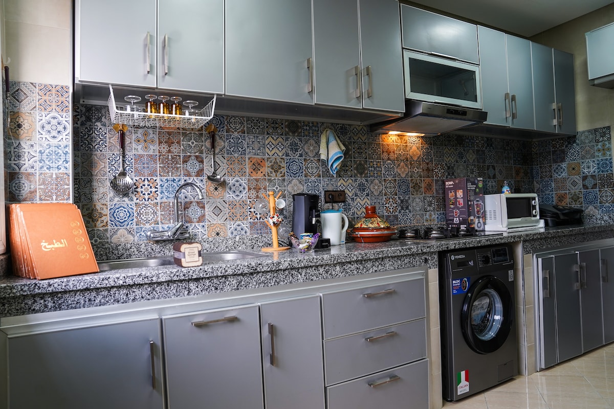 ✨Panoramalägenheten på Les Jardins Bleus kännetecknas av sin moderna och eleganta design, varje element är noggrant utformat för att garantera dig en oöverträffad upplevelse Centralt ✨läge ✅ Lägenhet med panoramautsikt över havet och nära: ✅ 1 minut från Martil Beach 🏖 och dess berömda Corniche ✅ 5 minuter till Cabo Negro Beach 🏝 ✅ 4 minuter från Ikea och KFC 🍗 ✅ 6 minuter från Marjane och McDonald's 🍟 ✅ 1 min till restauranger, kaféer, butiker