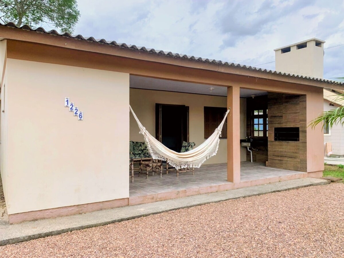 Rymligt och mysigt utrymme, bara några steg från Lagoa dos Patos, perfekt för dem som söker vila och kontakt med naturen. Perfekt för ett uppfriskande bad eller stunder av eftertanke vid soluppgången. På sommaren är det ljust och trevligt; på vintern blir det en mysig tillflyktsort. Den har en stor uteplats för att njuta av utomhus, har en chimarrão, läsa eller helt enkelt koppla av mitt i lugnet på platsen.