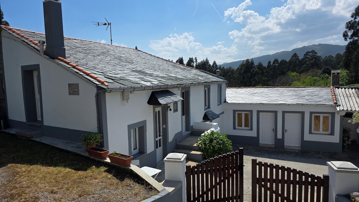 Tvåvåningshus byggt 1835 intill Camino de Santiago, 900 m från havet och med utsikt över bergen. Den renoverades 2020, med nytt badrum och kök, och behåller de ursprungliga stenmurarna. Med bakre terrass och trädgård och täckt veranda. Engelsktalande. 日本語が話されています。
