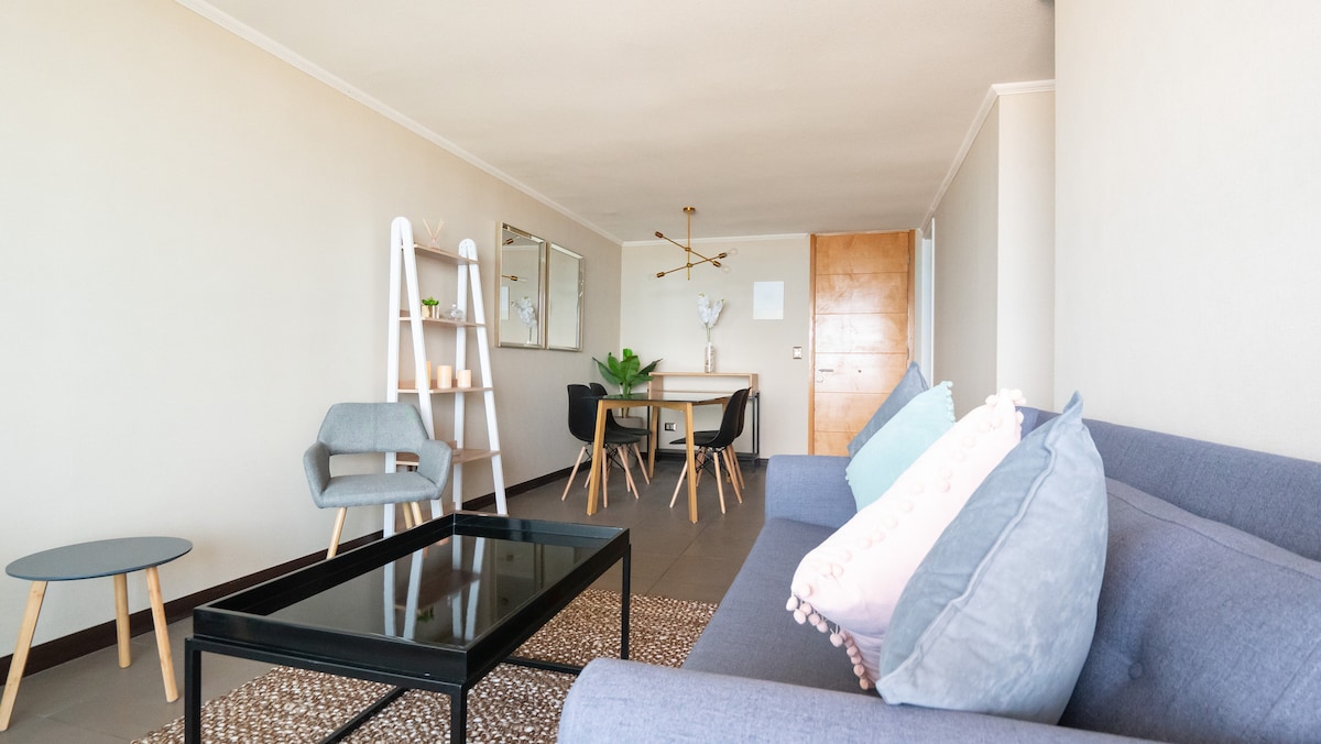 Unik och familjelägenhet, lämplig för upp till 8 personer, njut av dess komfort och läge, framför parken och Playa Brava, några steg från stranden och Cavancha halvön, nära stormarknader, restauranger, kasino. Regler för användning av gemensamma utrymmen i lägenheter; POOL: Tisdag till fredag 10:00 till 20:00. Lördag till 15:00 Söndagar och helgdagar kan inte användas. GYM: måndag till söndag 10:00 till 22:00.
