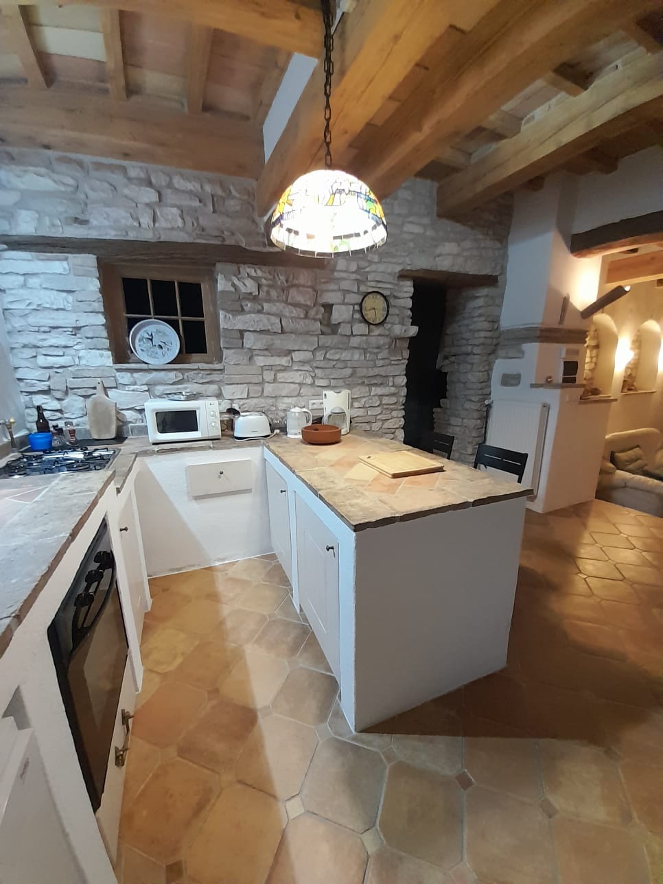 Hus på två våningar som förbinds av en inre trappa, med oberoende ingångar. På bottenvåningen finns ett fullt utrustat kök, ett vardagsrum och ett badrum med bubbelpool. På övervåningen finns två sovrum, varav ett är ett dubbelrum, ett mångsidigt rum som kan användas som vardagsrum eller sovrum, och ett andra badrum. Tre satellit-TV. Rymliga, välskötta och bekväma rum, perfekt för par, familjer eller små grupper som vill koppla av.