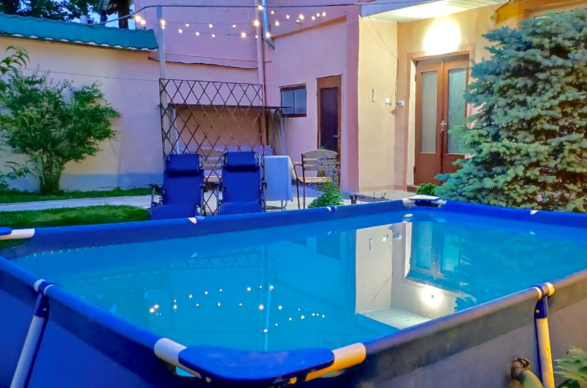 Mycket trevligt hus med privat trädgård och entré. Fullt renoverad. Inuti Tashkent stad. Alla butiker, bankomat, transport mycket nära Bra fiberinternet. Du kan bo med husdjur Stort RUM. Dubbelsäng och en bäddsoffa Super söt stuga inne i Tashkent stad. En ny renovering har gjorts. Tvätt, luftkonditionering är tillgänglig. Du kan bo med hunden eller katten. Mycket bekvämt läge butiker 150 meter från huset. Transport Bra internet. Du kan grilla, bada i trädgården.