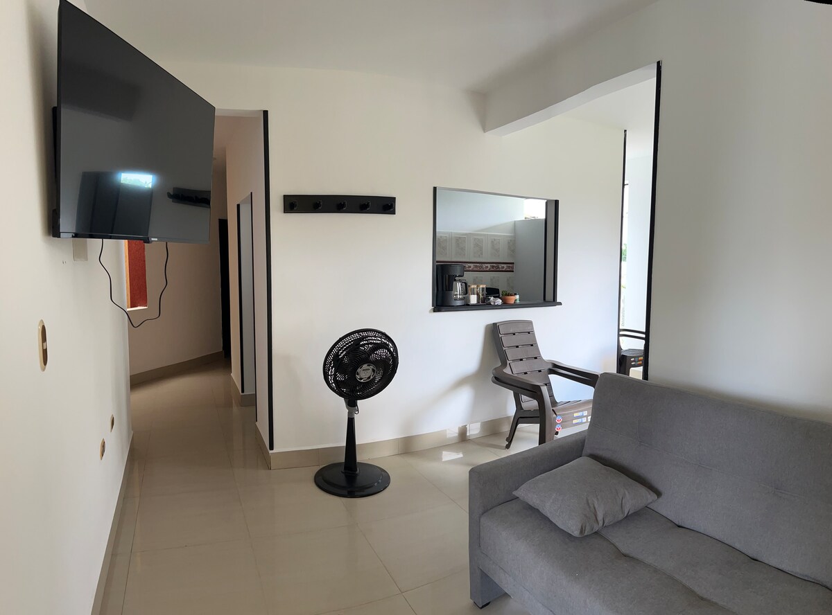 Koppla av på denna unika och lugna tillflyktsort. En rymlig och bekväm studiolägenhet, fullt utrustad. Den har två privata balkonger och ett socialt område för din njutning, utrustat med hängmatta och matplats, vilket erbjuder en plats utomhus för att rensa ditt sinne och njuta av solen. Det finns ett vardagsrum där de boende kan umgås och koppla av. Dessutom har du tillgång till parkeringsområdet.