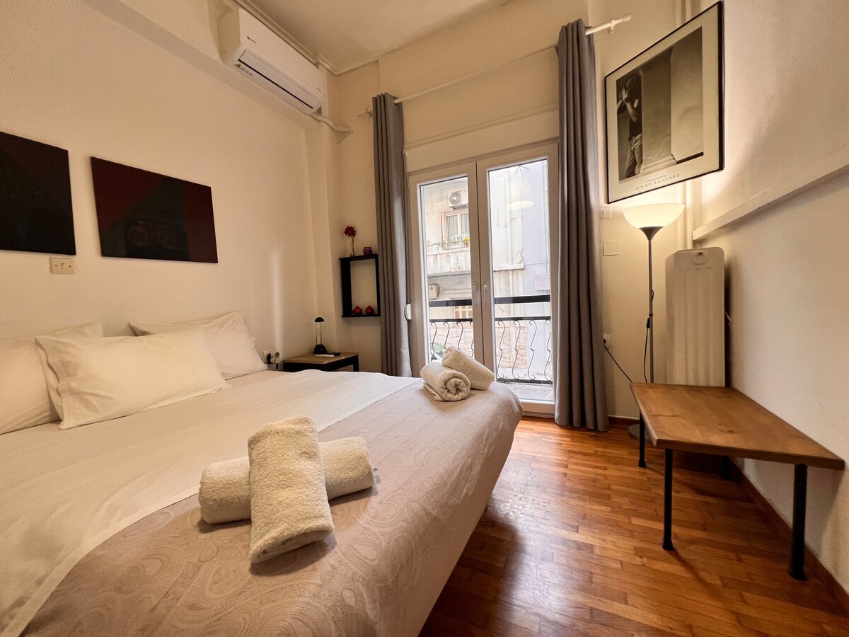 En elegant lägenhet i Aten, ägd och designad av Neta Dror, en designer och konstnär som har genomsyrat utrymmet med sin personliga vision. Denna lägenhet har ett unikt utrymme som kombinerar gamla och nya element. Lägenheten har ett stort vardagsrum med en bekväm soffa, ett matbord och ett kök med alla bekvämligheter. Sovrummet har en bekväm dubbelsäng och badrummet överraskar och glädjer. Denna lägenhet är mer än bara ett ställe att sova på, det är ett ställe att uppleva.
