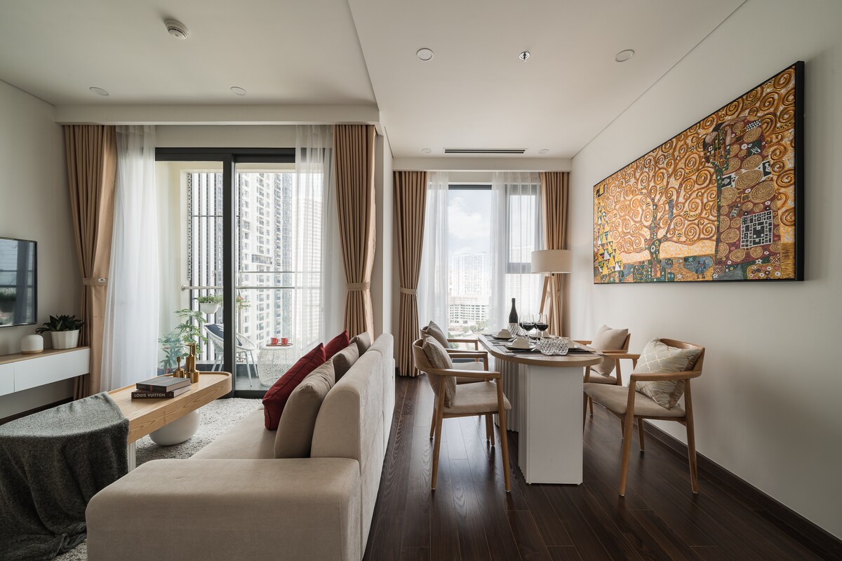 Välkommen till "Luxury Retreat" 2-rumslägenhet i hjärtat av Vinhomes Smart City. Detta är inte bara en ny lägenhet, utan en plats där jag har ägnat mig åt att ta hand om varje litet hörn, och önskar att ge dig den mest avkopplande och eleganta semestern. Varmt välkomnande: Receptionsteamet och personalen ler alltid för att välkomna dig med den eleganta stilen på ett 5-stjärnigt hotell.