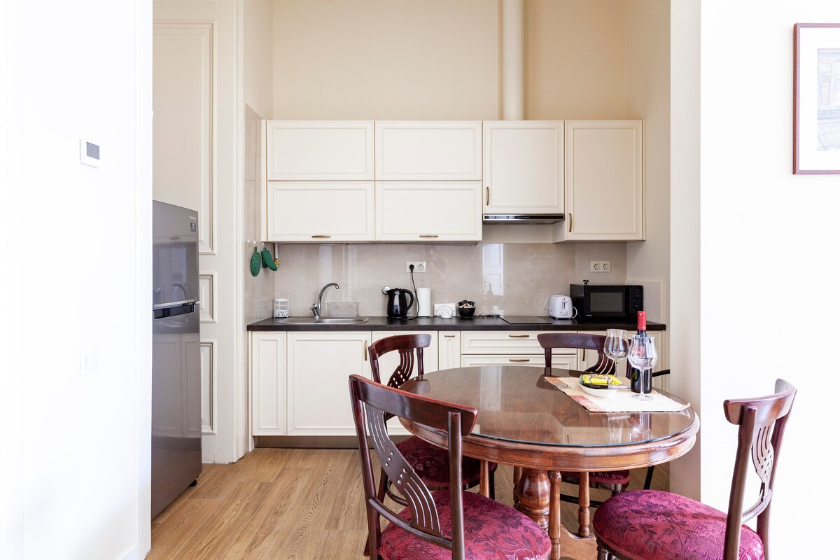 Detta historiska hus ligger i den vackra byggnaden i jugendstil som byggdes 1903 av oljemagnaten Mantashev och representerar en av stadens kulturarvsplatser. Det är idealiskt beläget mitt i hjärtat av Tbilisi, i hörnet av stadens centrala torg-Freedom Square, bredvid Courtyard by Marriott, museer och konstgallerier. Dess centrala läge erbjuder bekvämlighet för att nå sevärdheterna i den gamla staden och är ett idealiskt alternativ för familjer och vänner att bo i Tbilisi.