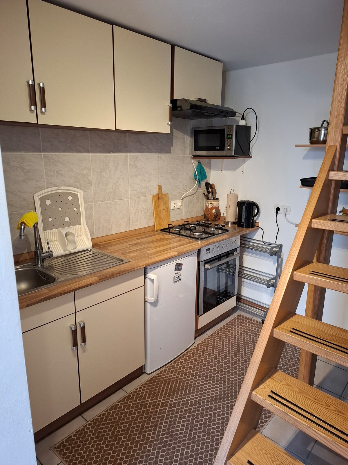 Fantastisk studiolägenhet med egen ingång och takterrass - Gratis parkering och busshållplats framför byggnaden - 10 minuter till tågstationen - 7 minuter med bil till gränsen - 40 minuter till Eindhovens centrum Studiolägenheten har en egen ingång. Bottenvåningen består av ett badrum, en toalett och ett kök. På övervåningen finns ett stort vardagsrum/sovrum med bäddsoffa, två stolar, bord, garderober, smart-tv med Wi-Fi och en takterrass för rökare. Hundar är ej tillåtna.