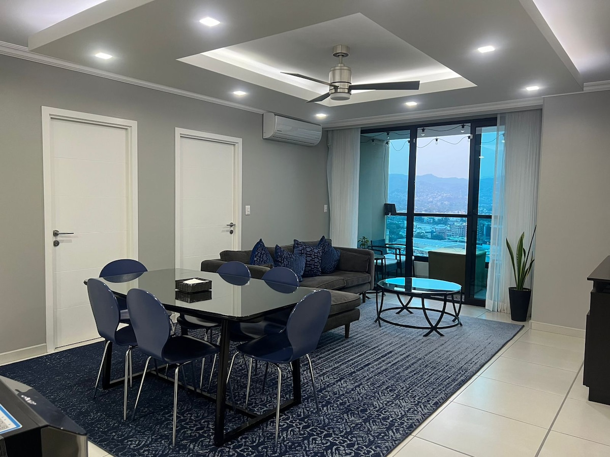 Njut av en elegant upplevelse i detta lyxiga boende i ett område av de mest exklusiva, lugna och centrala i Tegucigalpa. Särskilt att tillbringa i en familj och arbetsmiljö. Det har tjänsterna: - Wifi 100 g röd 5 g - Röstkontroll (Alexa) – Netflix, Max och Prime - Inträde utan att gå igenom lobbyn, nyckellås - Strikt säkerhetsvakt dygnet runt -50"TV i Sala, 43" i huvudrummet och 34" i 2 sovrum. - Matlagning på lager och redo att laga mat - Centro de Lavado