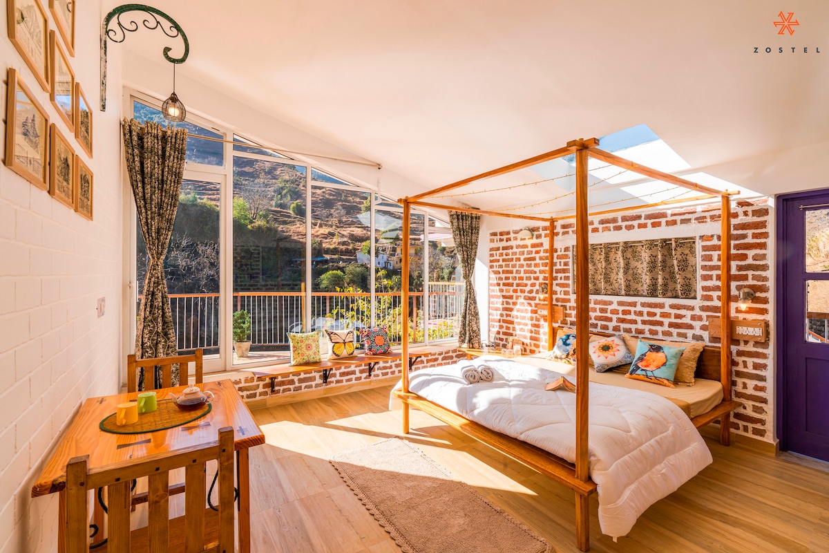 En-suite soligt rum med dubbelsäng och en rymlig balkong med utsikt över bergen. Inbäddat i en avskild by på väg från Mussoorie till Kempty Falls, är Zostel Plus Mussoorie hög på tröst och estetiska charm. Umpteen djungelstigar, bäckar och mini-vattenfall ligger bara en kort vandring bort från vårt ritzy campus.