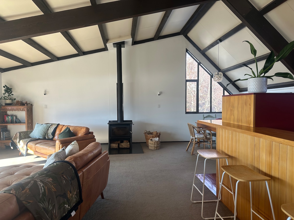 Omfamna mysigt, hygge-inspirerat boende på Ruataniwha Hut – en välkomnande vedeldad stuga belägen i det höga landet i de södra Alperna. Drick kaffe på morgonen medan du tittar på bergen. Utforska Aoraki/Mt Cook National Park under dagen. Laga mat, ät och koppla av under en filt av stjärnor på natten. Det är perfekt för par eller en liten familj som uppskattar en enkel semester och en bas att äventyra från. Endast 15 minuter från Twizel och 50 minuter från Aoraki/Mt Cook National Park.