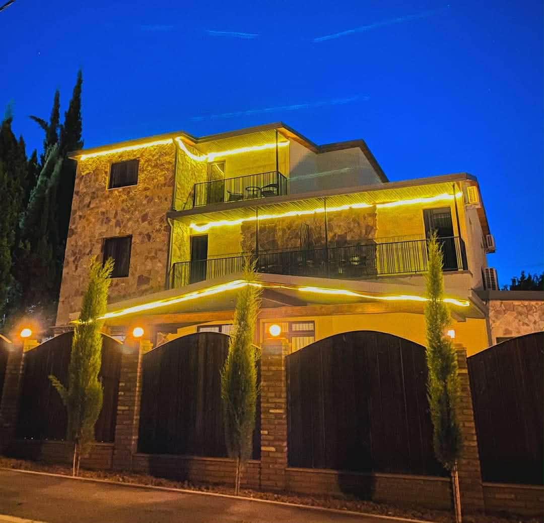 Välkommen till vårt mysiga pensionat mitt i Telavi! Vi är bara några steg från tennisbanor, och inom kort gångavstånd hittar du King Erekle II:s Museum, gamla kyrkor, teatern, lokala marknader, apotek, kaféer och restauranger — allt du behöver finns i närheten. Vårt pensionat erbjuder 9 rena och bekväma rum, som rymmer upp till 22 gäster. Oavsett om du reser med familj, vänner eller som grupp hittar du ett varmt och välkomnande utrymme här.