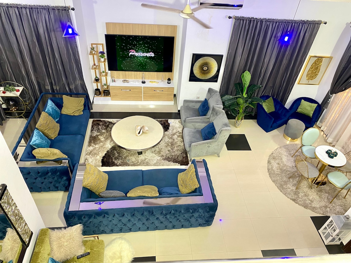Come to this beautiful place right opposite The Greens Lounge Tema, and have fun during your stay. A very spacious room with a 65-inch TV, DSTV access and an installed water heater in the bathroom. Enjoy access to the living area/hall, where you can also host your family and friends who come to visit. The hall is well furnished, fully air conditioned and a 75-inch TV with DSTV access as well, to watch live matches of your favorite Premier League teams. Rooftop available with a BBQ grill.