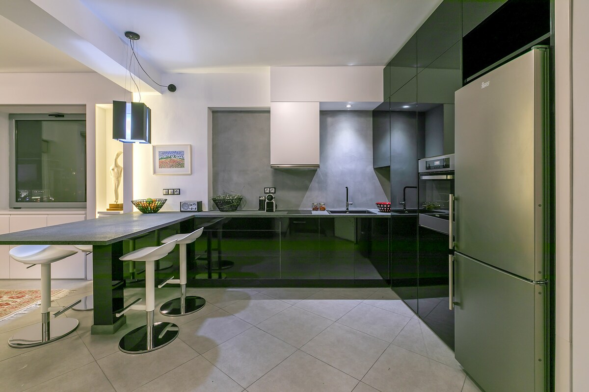 Fantastisk panoramautsikt över Parthenon Akropolis från insidan av lägenheten med öppen oblockerbar horisont och med spektakulär stadsutsikt, hav, solnedgång, Akropolis och Lycabettus Hill utsikt från balkongerna också! Beläget mitt i den historiska atenska triangeln som består av Akropolis Parthenon, The Columns of Olympian Zeus vid sidan av National Gardens of Zappeion Hall och Panathenaic Stadium (Kallimarmaro) där de första olympiska spelen någonsin ägde rum.