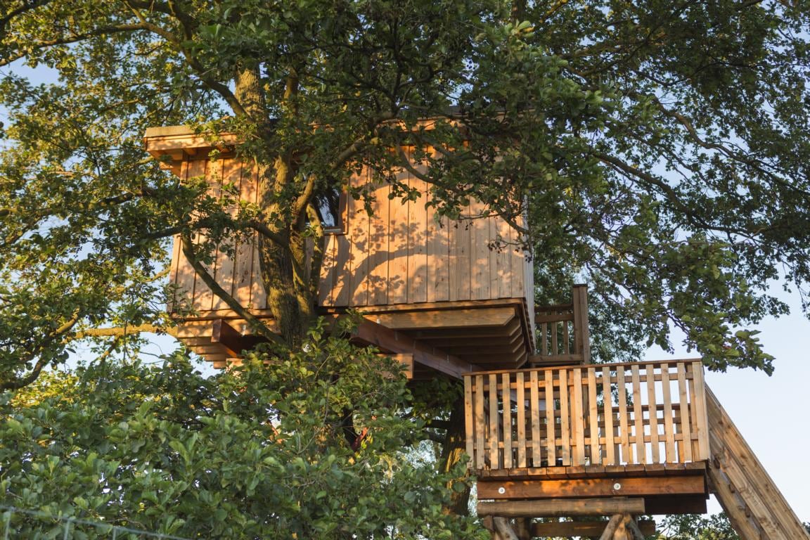 På en kulle, inbäddad bland gamla träd, står 1 av 3 okonventionella stugor med vardera 2 sovplatser. I alla väder (utom på vintern) kan stugan erbjuda campingvänner, cyklister eller spontana en övernattning, som ett alternativ till tältet. Bara en sovsäck och en handduk i bagaget. Komforten består av ett tak över huvudet, en plats att sova, en härlig lägereld och en varm utomhusdusch med separat toalett.