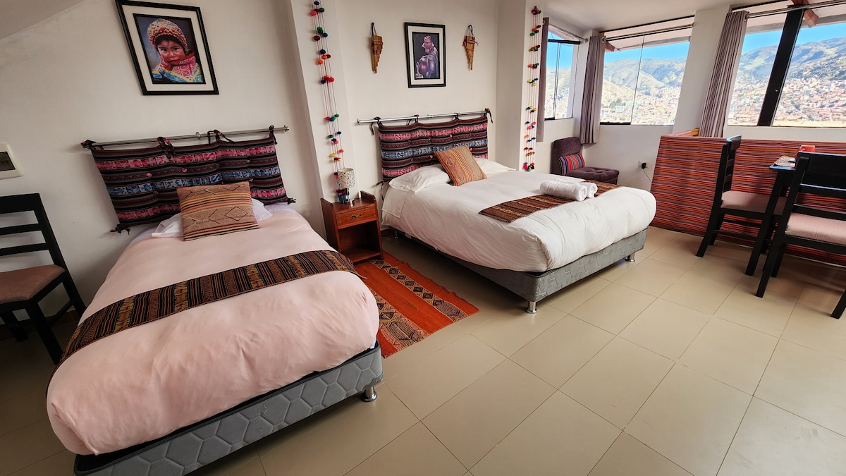 Cute Apartment with a beautiful view of Cusco. Located in the traditional neighborhood of San Blas,it's an ideal spot for couple-family. Righ here family-friendly activities, nightlife, interesting museums,lovely churches.We're just 10 min from the main square. You’ll love our space due to location, the comfy bed, the coziness,amazing view,home feeling.We can offer you AIRPORT PICKUP & TRANSFER,besides we also count with a reliable TRAVEL AGENCY with professional staff