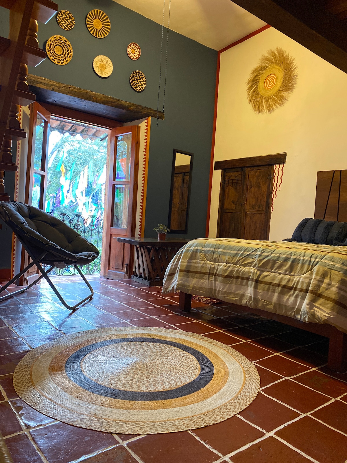Denna frodiga, växtfyllda gömställe ligger undangömt på den livliga Amajac-gatan och placerar dig mitt i händelsernas centrum – bara 3 minuters promenad från ingången till Malinalcos ikoniska arkeologiska plats. Omgiven av kullarna i Malinalco och bara några steg från Luis Mario Schneider Museum och stadens bästa restauranger, är det det perfekta stället att koppla av efter soliga dagar av utforskning.