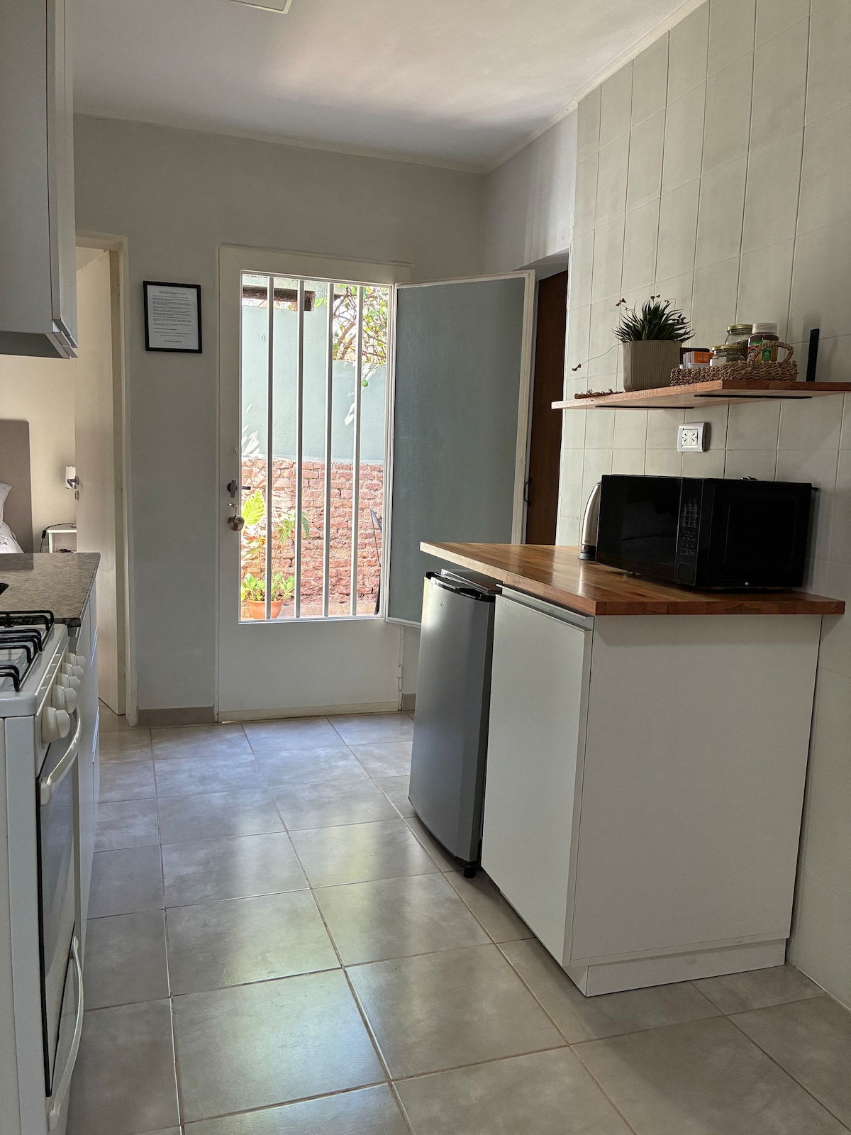 Invändig lägenhet med 2 rum för 4 personer på bottenvåningen. 📍Läge 2 kvarter från centrum, ett halvt kvarter från livets park, nära kusten i Villa María. Husdjur är inte tillåtna. Bekvämligheter🏡 Dor. matrimonial Dor. marinera säng Kök Badrum Uteplats med grill Wi-Fi Kylskåp Mikrovågsugn Gasolspis och ugn Smart-tv Uppvärmning Fläktar Luftkonditionering Bekvämligheter💡 Städning 1 x vecka Sänglinne Handdukar Fullt utrustat porslin