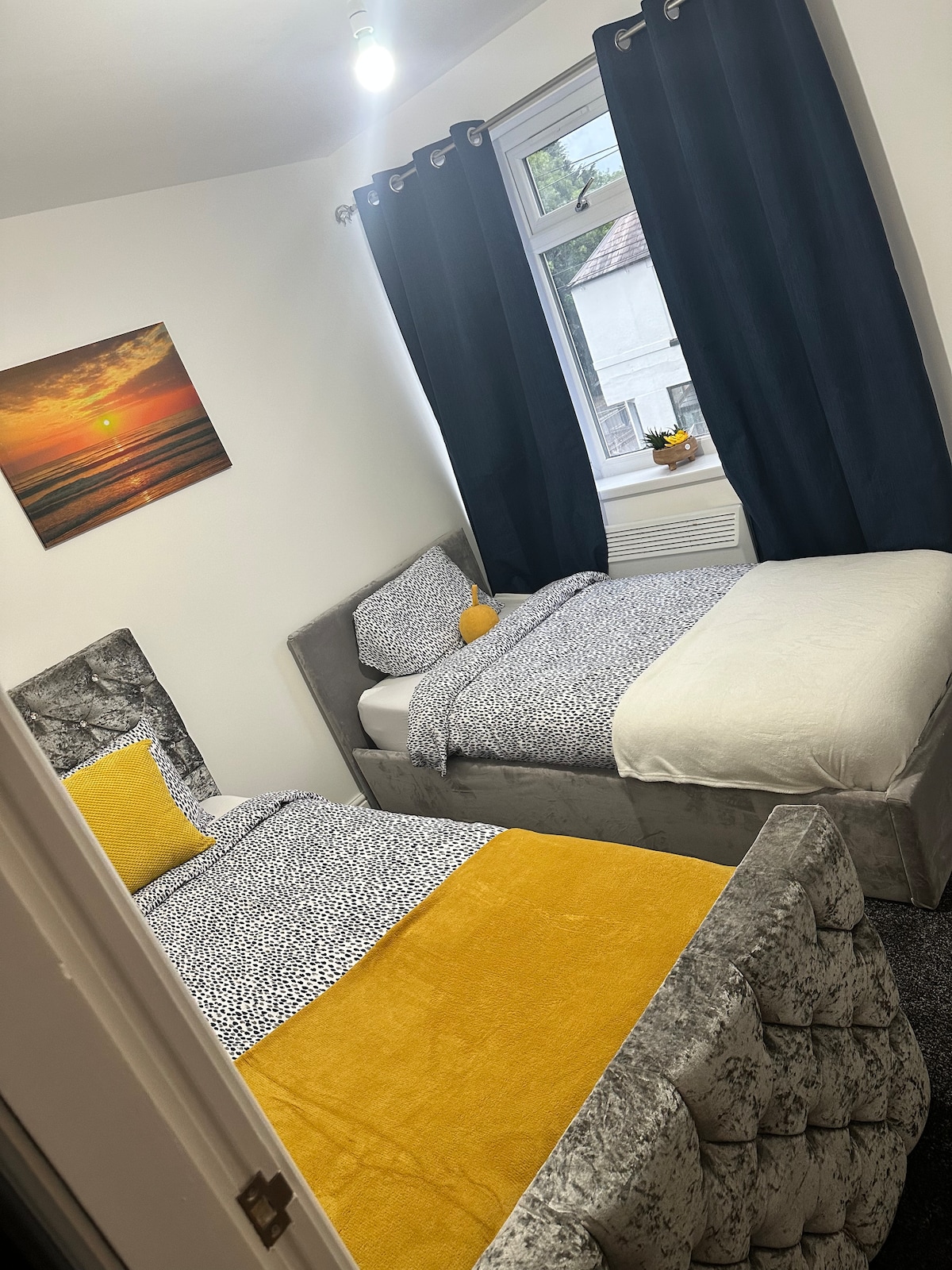 "Mini Flat" med helt privat tillgång och litet utomhusutrymme. - Pentry med handfat, spis, mikrovågsugn och kylskåp - TV - LITEN DUBBELSÄNG (4 fot) - Dusch, toalett och handfat - Parkering MYCKET tyst; sjöar i varje ände av gatan. Byns centrum kort promenad bort med pub, stormarknad, café och chip shop. Busshållplats ligger i slutet av gatan vilket ger snabb tillgång till centrum. Observera sängens storlek (1 x liten dubbelsäng) och den har 1 privat badrum, inte 1,5!