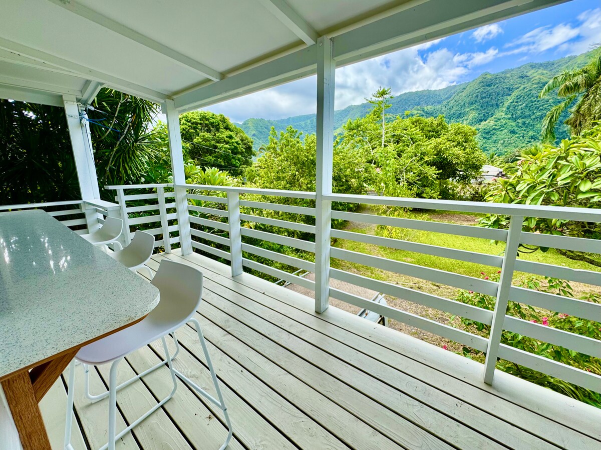 Halvvägs mellan Papeete och Teahupoo, upptäck denna charmiga träbungalow på en rymlig tomt med en magnifik utsikt över den intilliggande skogen och på andra sidan utsikten över bergen. Perfekt för 2 personer, men boendet rymmer upp till 4 personer tack vare bäddsoffan. Tillgång till havet 300 m promenad. Atimaono Golf 10 minuter med bil, Vaima-källan och Vaipahi-trädgården 5 minuter med bil. Luftkonditionering, kök, WiFi (fiber), TV, tvättmaskin, diskmaskin, grill.