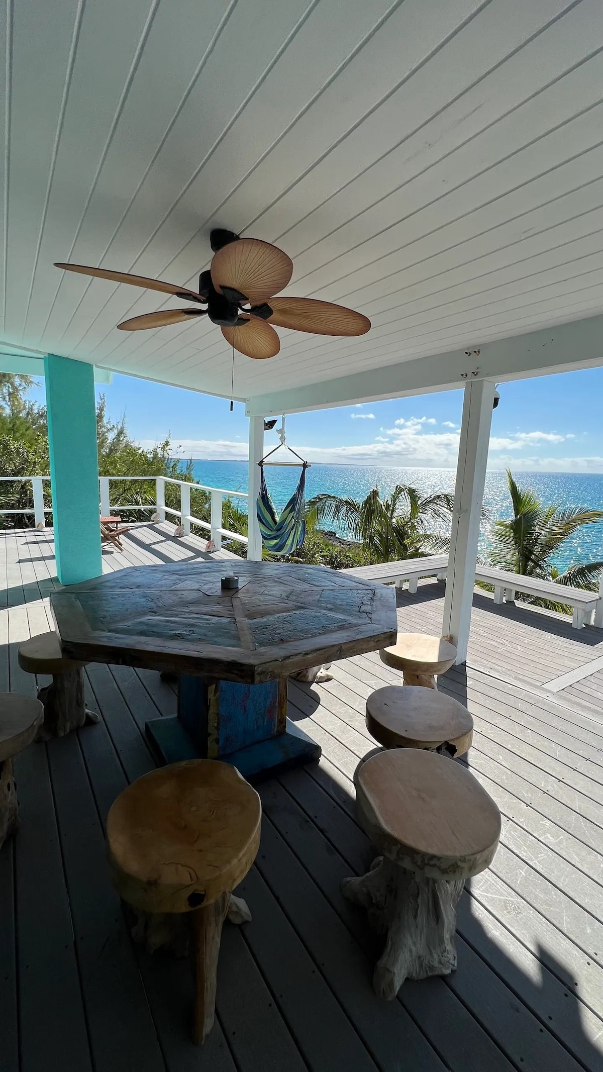 Koppla av på Banana Wind, ett privat hem vid havet på Cat Island med egen vit sandstrand, otrolig snorkling och kajaker för att utforska rev. Sover 6 med 2 sovrum + loft, 1,5 badrum och ett modernt kök. Njut av fantastisk utsikt, Starlink Wi-Fi, luftkonditionering och öcharm. Gå till en närliggande restaurang eller få måltider levererade. Perfekt för par, familjer eller en lugn tropisk semester. Vaktmästare finns tillgängliga för att hjälpa till med ankomst, mat och turer.
