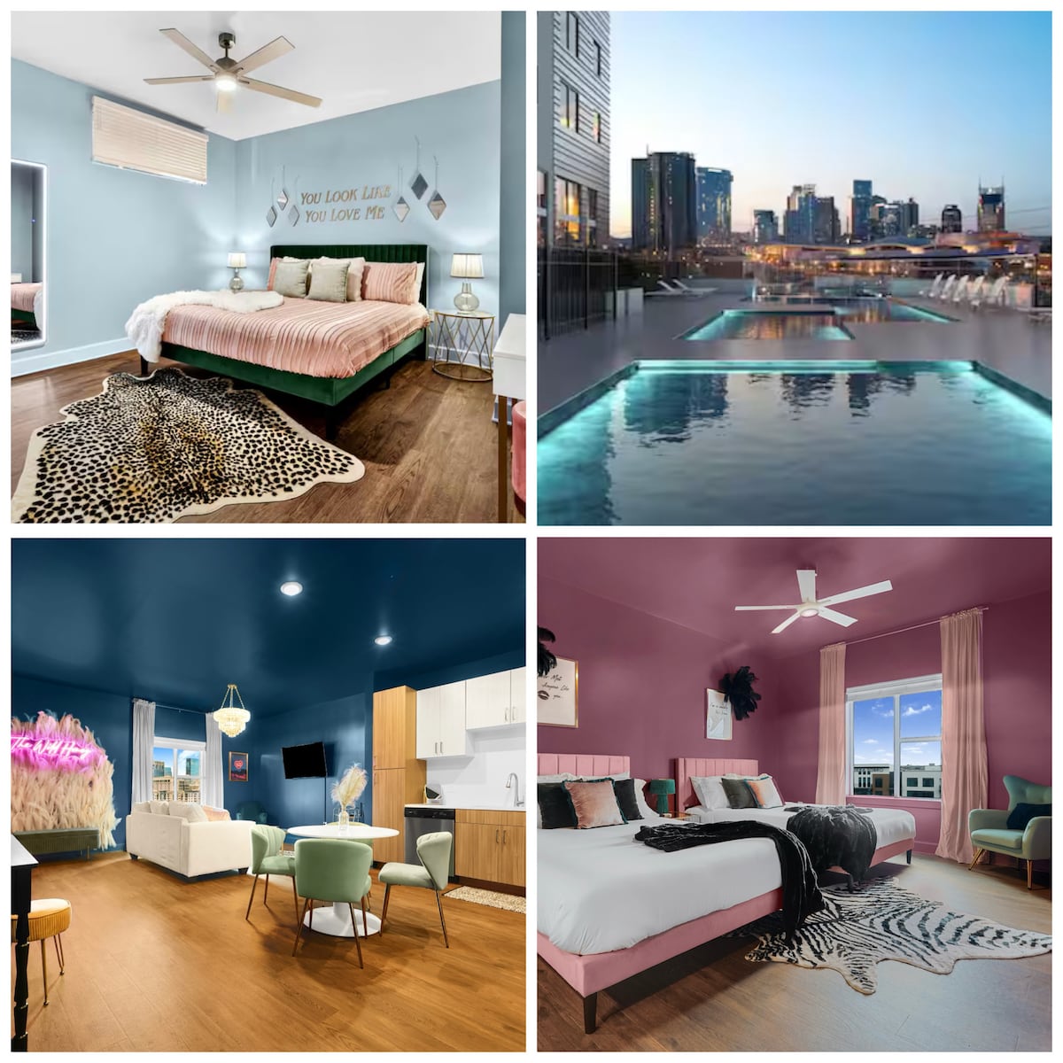 RABATT FÖR MAMMOR – för du förtjänar att bli bortskämd 💕 Föreställ dig att du börjar dagen med en kopp kaffe eller te i sky-loungen med utsikt över Downtown skyline... Efter att ha utforskat de livliga scenerna på Broadway kan du koppla av i en lyxig dubbelsäng för en perfekt natts sömn... Oavsett om det är en tjejresa, en romantisk tillflyktsort eller en produktiv arbetsplats, erbjuder detta utrymme komfort, stil och bekvämlighet mitt i Nashville. Boka nu och låt mig hjälpa till att göra din resa extra speciell!