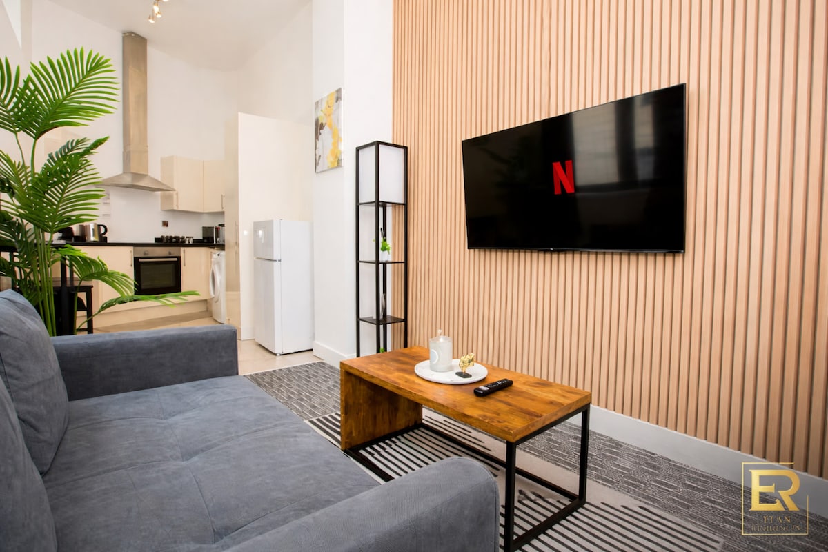 Fantastisk viktoriansk konvertering med karaktär och stil, i hjärtat av staden. Denna eleganta lägenhet har allt du behöver för att känna dig som hemma. Dess moderna design kombinerar originalfunktioner med lyxiga sängar, egyptiska bomullslakan och ett urval av kuddar att välja mellan. Det är perfekt för dem som är vana vid lyx som kanske föredrar bekvämligheten med en Airbnb-vistelse. Läget kunde inte vara bättre, med många höjdpunkter bara några minuter till fots från ytterdörren.