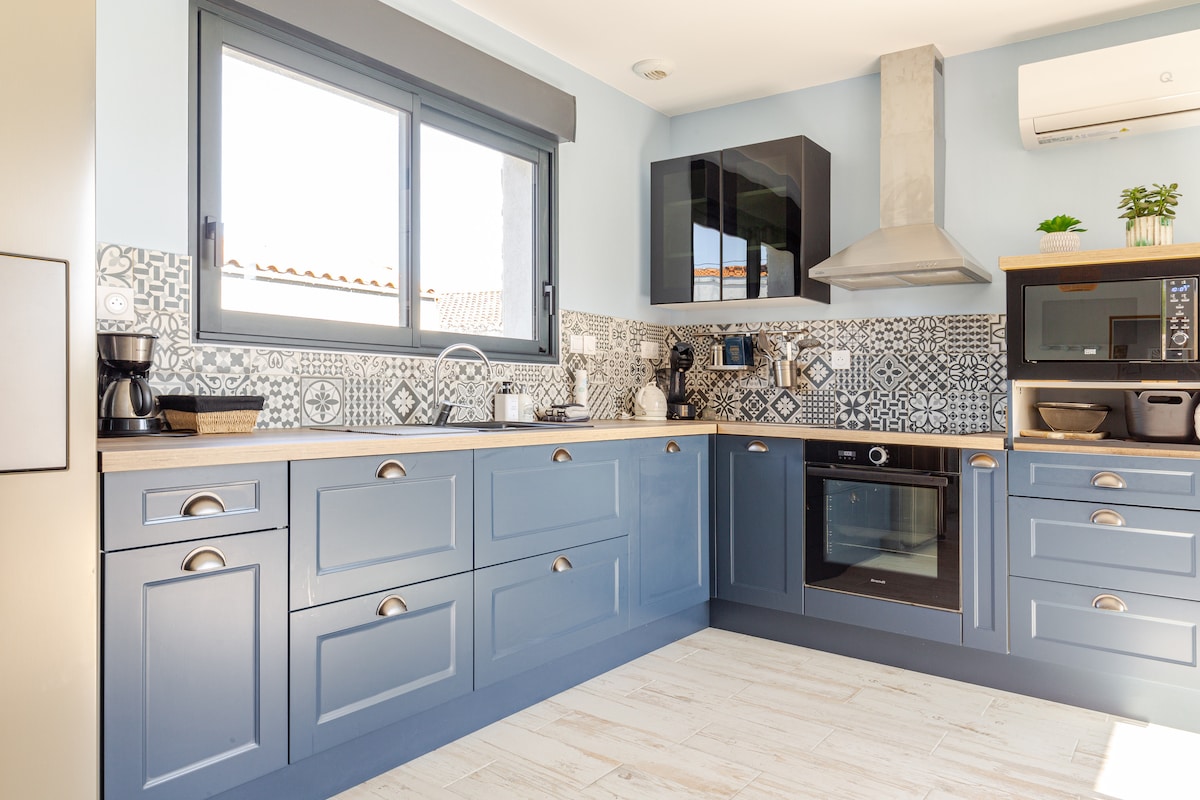helt nytt boende, luftkonditionerat, mycket lugnt. Nära havet, Royan/Saintes-området 2 sängar 160x200 (en på mezzanin med hängande katamaran-nät), sängkläder tillhandahålls Högklassigt utrustat kök, porslin tillhandahålls, elektrisk ugn, induktionshäll, kylskåp, mikrovågsugn, kaffebryggare Duschrum, hårtork, garderober, TV (Molotov TV, Amazon Prime, Disney +) Wifi Privat innergård mot söder, trädgårdsmöbler, parasoll, grill på begäran Privat parkering (bil + släpvagn ok)
