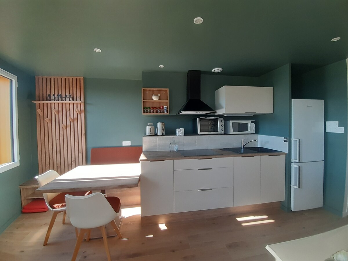 Upptäck denna vackra, helt nya studio, bara 8 minuter från Nantes en TER. Perfekt om du letar efter komfort och lugn samtidigt som du är nära alla bekvämligheter (butiker, buss, tåg). Matplatsen består av ett vackert kök, välutrustat med en stor matplats som också gör att du kan arbeta. Sängkläderna är av hög kvalitet och badrummet har en vacker dusch. Gäster kan njuta av en stor privat uteterrass.