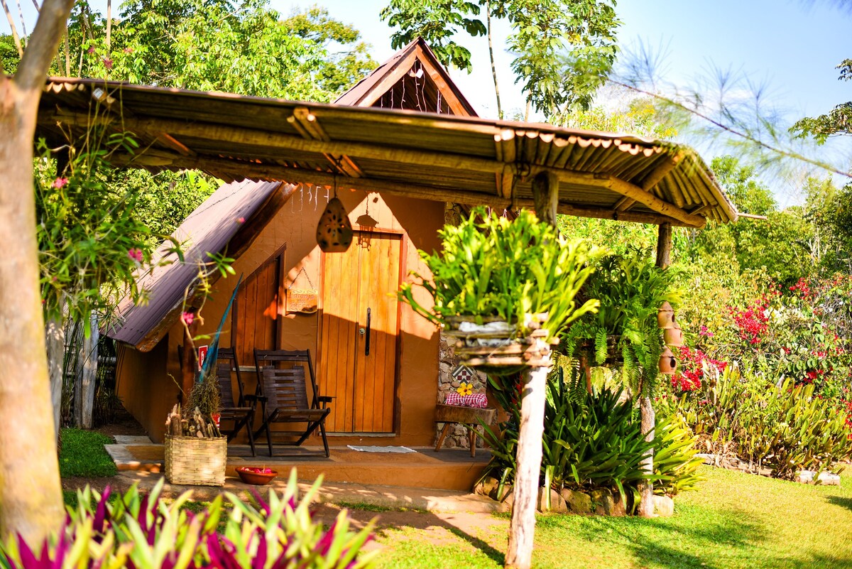 Detta unika ställe har sin egen stil. Rustika och charmiga Chalés, en idealisk plats för att komma bort från rutinen och få kontakt med naturen, med inredning som blandar komfort och välkomnande. Yta 27 m2 *Vi serverar inte frukost, Stugan har dock ett minikök utrustat med mikrovågsugn, kaffebryggare, smörgåsmaskin, stort kylskåp och mixer.