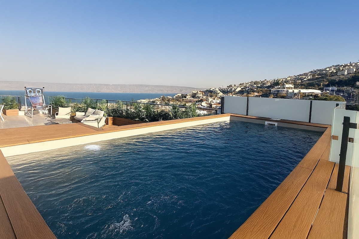 ליצור זיכרונות חדשים במקום האירוח הייחודי הזה, שמתאים למשפחות.ברוכים הבאים לגן של שלווה בטבריה – המקום המושלם לחופשה משפחתית או רומנטית. הדירה ממוקמת בקומת גן פרטית עם בריכה מרעננת, מרפסת ישיבה נעימה, ונוף קסום של טבריה והכנרת. החלל מרווח, מאובזר בקפידה, כולל מטבח מאובזר, פינת אוכל משפחתית וסלון מפנק. הנכם מוזמנים ליצור חוויות בלתי נשכחות במקום ייחודי, שקט ומרגיע.