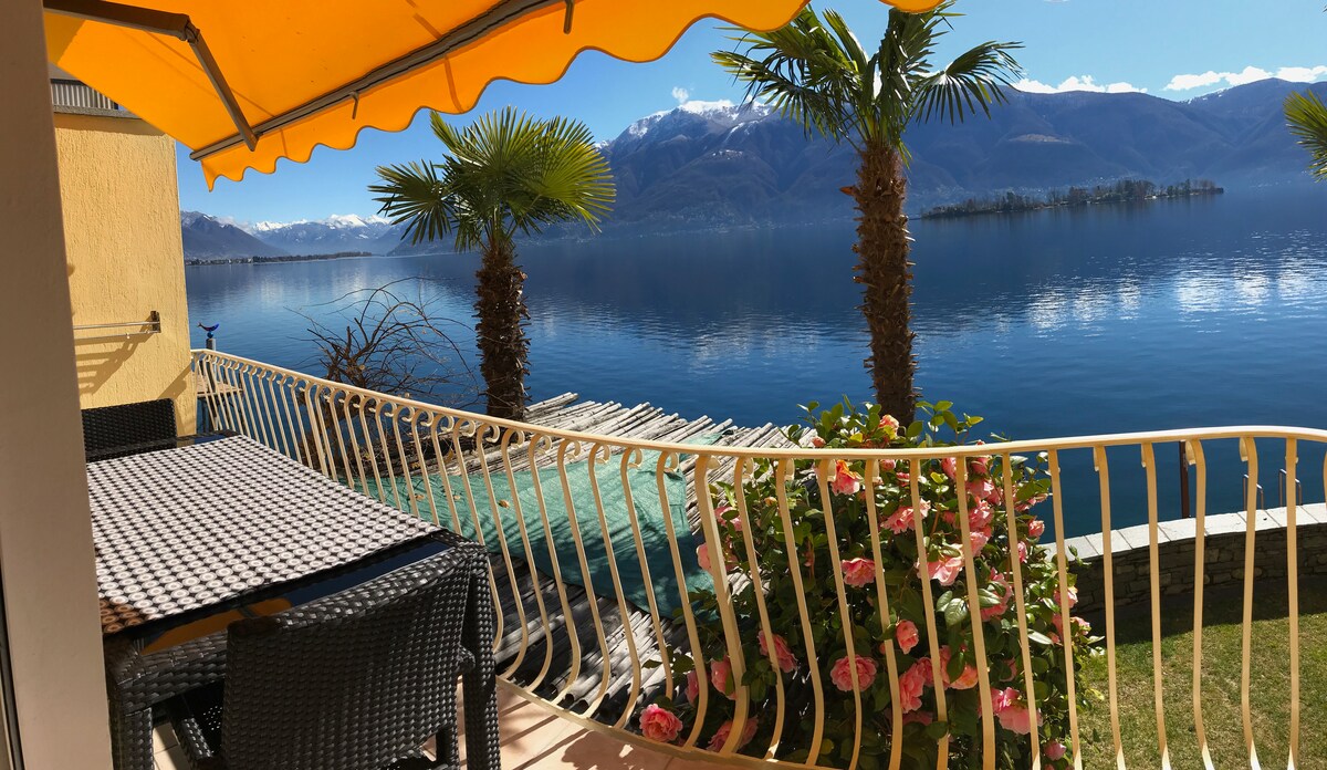 Raffinerad och välskött lägenhet direkt på sjön. Perfekt lägenhet för två personer. Lägenheten har två våningar, på bottenvåningen samt vardagsrummet hittar vi den direkta utgången till den allmänna stranden. Helt renoverat med höga stående tillbehör. Privat parkering ingår i priset. På 15 minuter når du Locarno och Ascona, på 20 minuter Bellinzona. På 5 minuters promenad hittar vi barer, restauranger, ett offentligt badrum och en tennisbana. P.S. Ovanför sängen finns en gammal brödugn.☺️