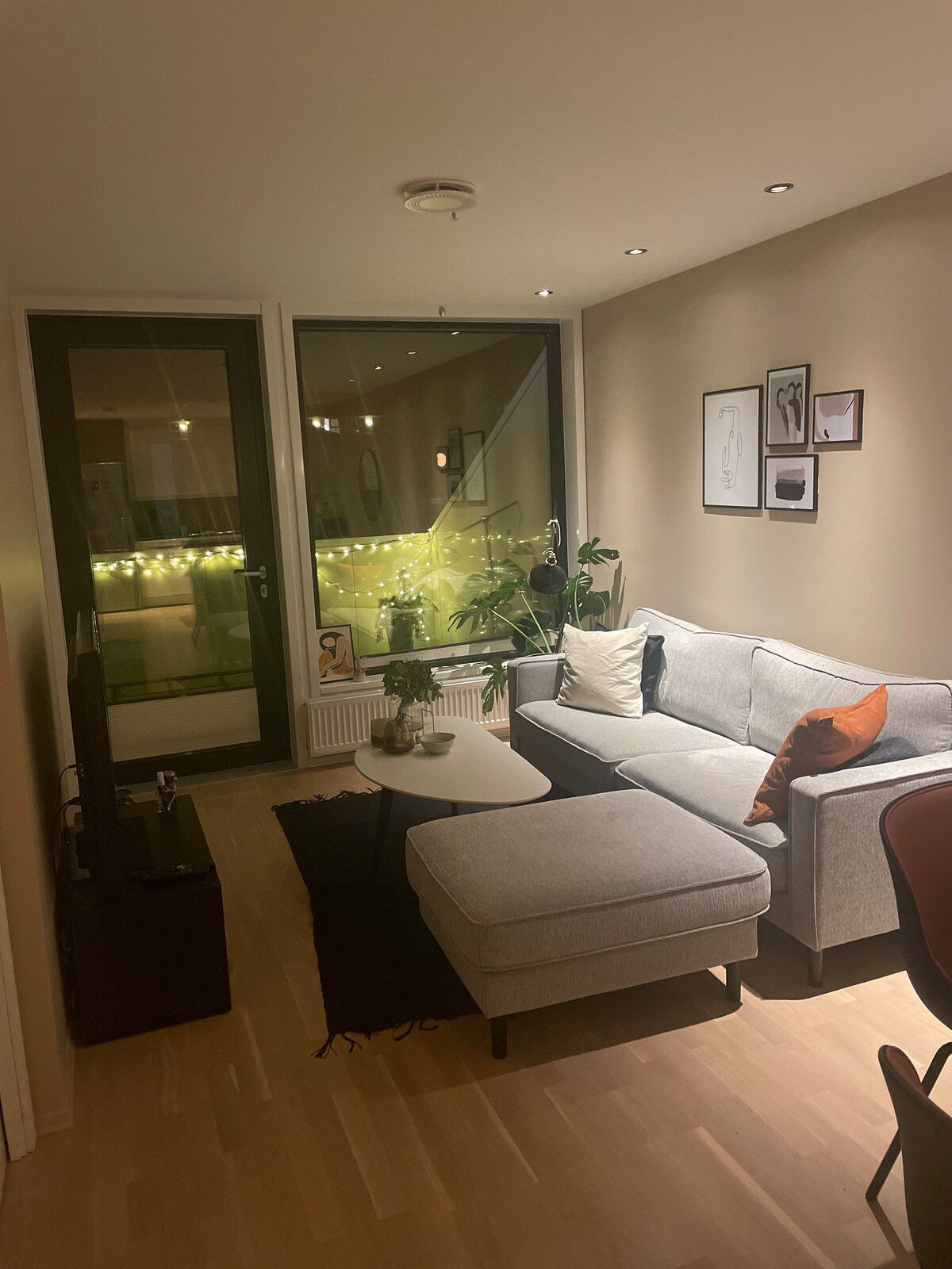 Lägenhet på 43 m2 rymmer 6 personer, plus bebis. 4 sovplatser i sovrummet och två på bäddsoffan i vardagsrummet. Täcken, lakan, handdukar, diskmedel, tvål tillhandahålls. Stort badrum. Kök med all utrustning, matplats för 6 personer och baby. Kylskåp, frys, spis med ugn och diskmaskin. Parkering på tomten för 1 bil och eventuellt extra bilar på gatan. Rökning förbjuden inomhus. Husdjur tillåtna. Kort avstånd till t.ex. den kungliga parken och norska utloppet och jærstränderna.