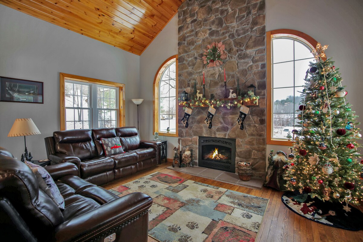 Sky High Chalet — på 10 tunnland, nära Wellsboro & PA Grand Canyon med privat miljö på toppen av ett berg med utsikt över många miles i alla riktningar! Denna stuga med 3 sängar rymmer 10 personer och har en bubbelpool, 800 kvm däck, är i utmärkt skick och har alla bekvämligheter som du skulle vilja ha eller behöver! Oavsett vad du gillar, Wellsboro erbjuder allt — vandring, cykling, kajakpaddling, 60+ miles järnvägsled för att cykla eller längdskidåkning, skidbackar, jakt/fiske, vinprovning och R&R.