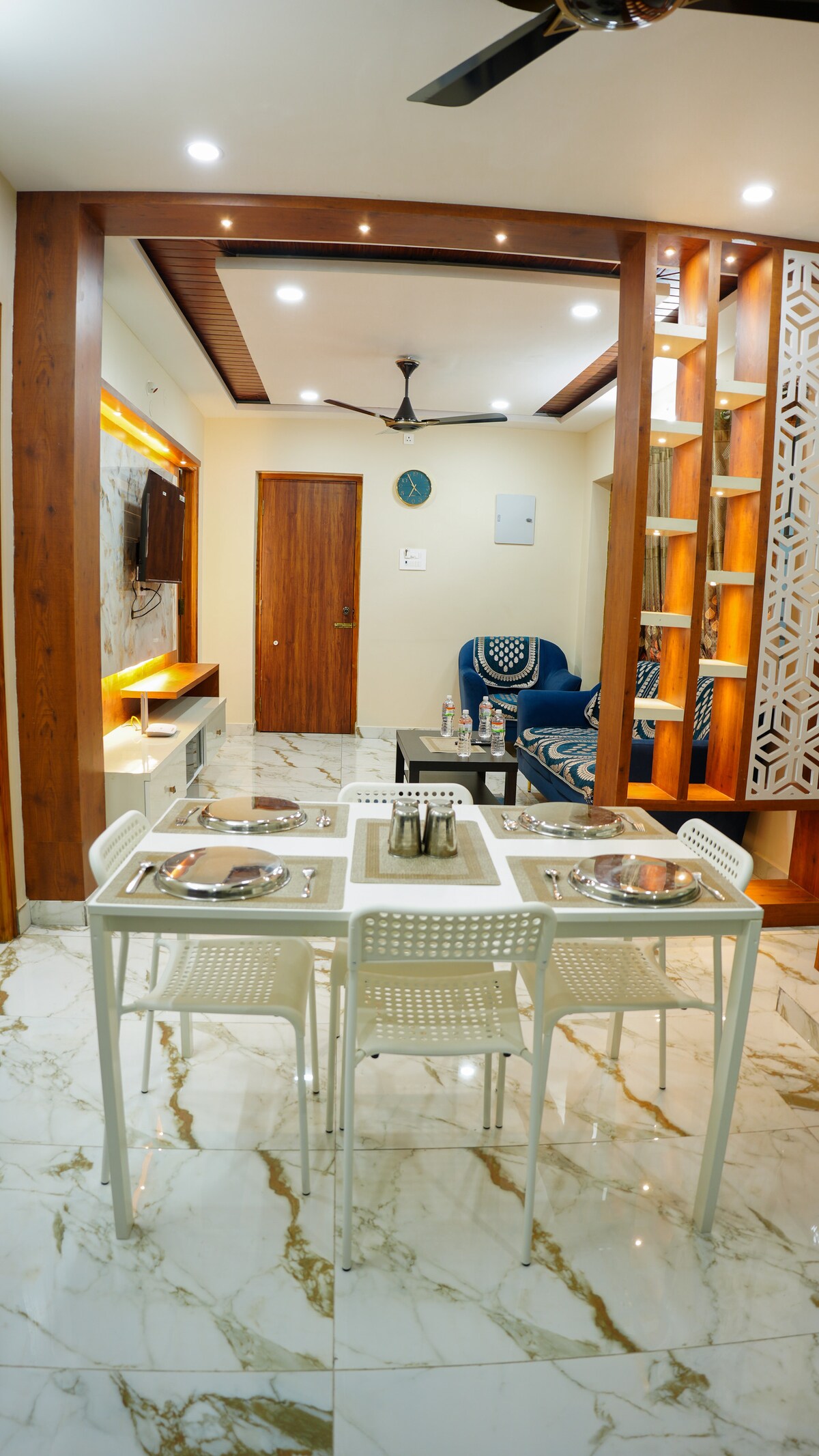 Där lyxig vistelse kommer tillsammans med gudomlighet i vår heliga stad, Tirupati! Ha en lugn vistelse med familj och vänner i vårt boende. Vi servar 15 lägenheter med 2 sovrum och 3 badrum tillsammans med en hall och ett öppet kök. Vi välkomnar alla gäster från hela landet för en trevlig vistelse.