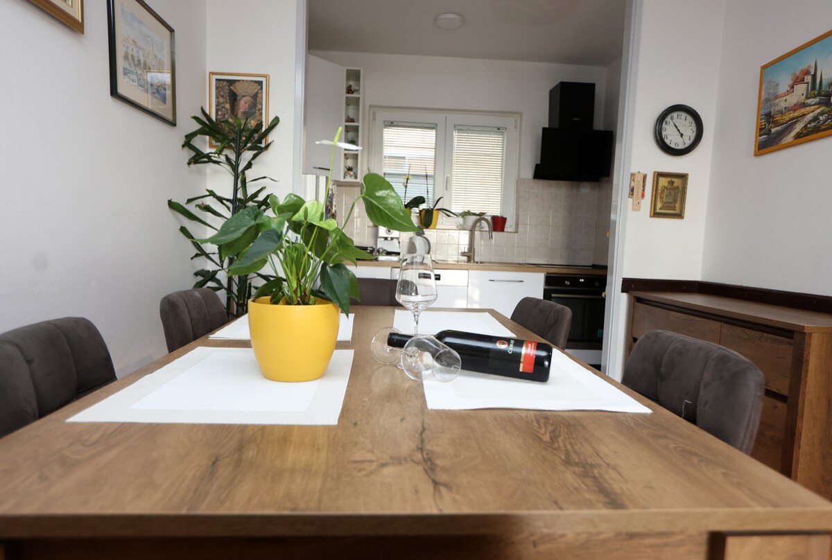 Denna nya och mondern lägenhet är idealisk för familjer med barn.Det är nära den mest populära stranden Slanica och det är 10 minuters promenad till centrum.Lägenheten är fullt utrustad(luftkonditionering,TV,wifi och tvättmaskin)Du har också privat parkering framför huset.Det finns två balkonger.Den främre som är ca 35m2 och den andra en liten från wich Du kan se havet.Det finns två sovrum,stort kök och badrum.