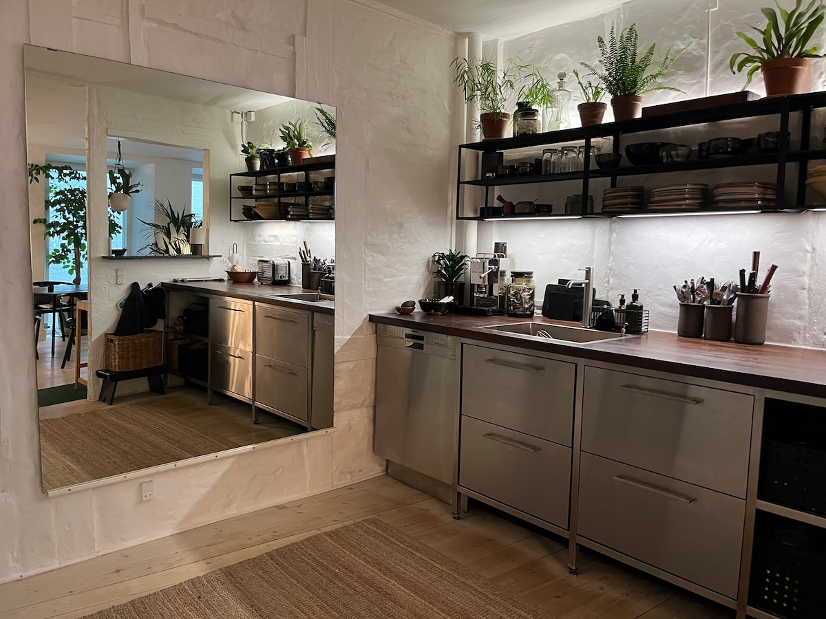 Symbolen för HYGGE! Lyxiga avslappnade skandinaviska vibbar i hjärtat av staden. Ett stenkast från Tivoli & stadshuset. Denna listade och elegant restaurerade lägenhet har en bekväm kingsize-säng, badrum med regndusch/modernt kök/mysigt vardagsrum och walk-in garderob. Våra gäster säger att de älskar denna sällsynta trädgårdslägenhet men den lugna privata trädgården är det som gör den så unik. Vi bor på övervåningen i vår dolda pärla från 1730 belägen vid Strøget i Marais i CPH:"Pisserenden" IG:@historichouseandgarden