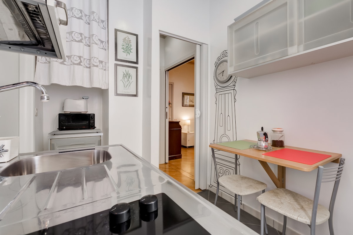 Denna lilla lägenhet i hjärtat av Rom är en plats som jag älskar och som har gett mig oförglömliga stunder. Jag tror att det är ett perfekt hörn för två. Du kan nå alla de viktigaste platserna i centrum till fots. Det är idealiskt för två personer eftersom det bara har ett sovrum och ett badrum, men exceptionellt hyr jag det för upp till 4 med familjer med två barn i åtanke. I vardagsrummet finns två fåtöljer som omvandlas till sängar. Under juli och augusti kan du njuta av luftkonditionering!