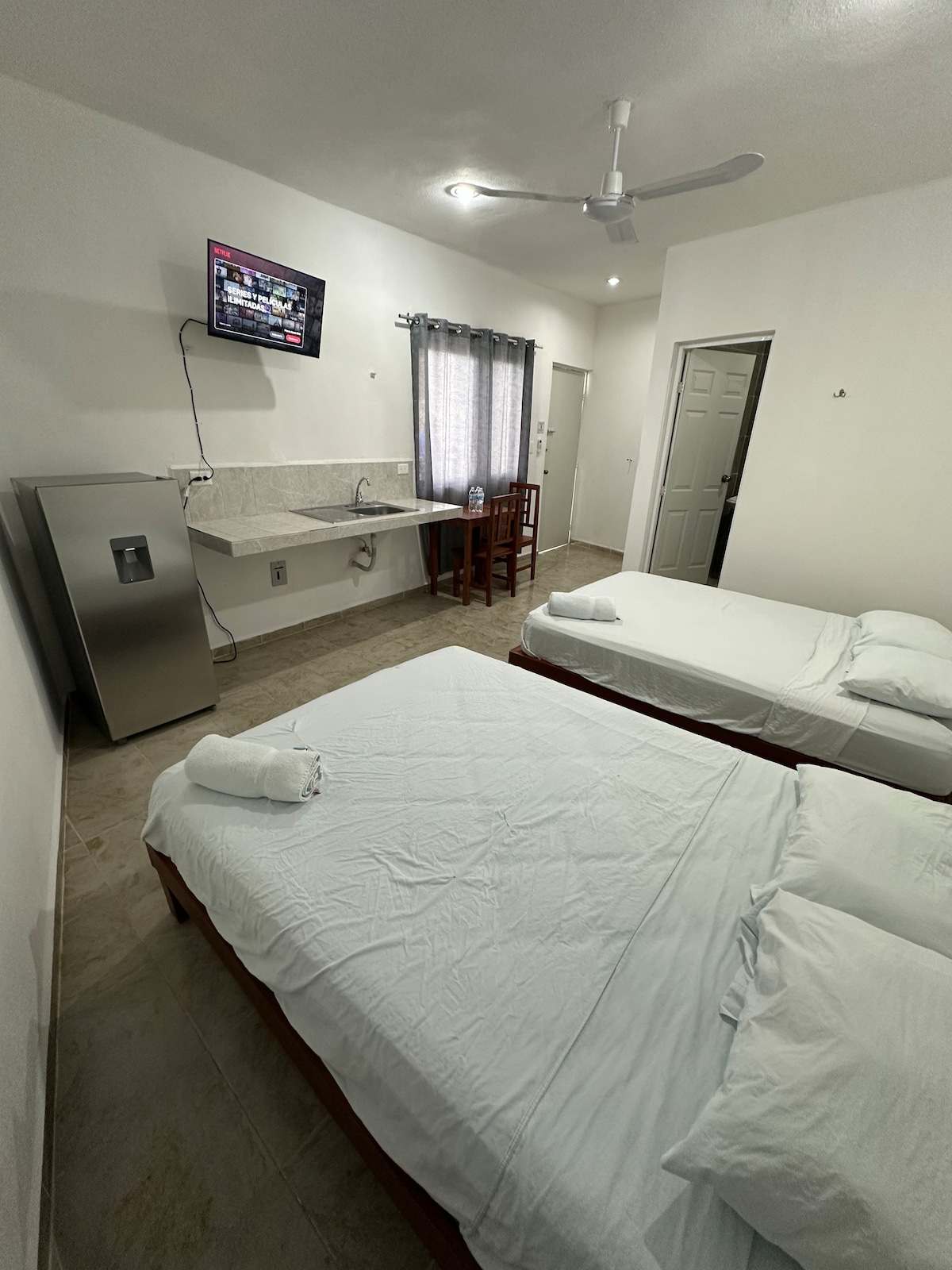 En reservas semanales 10% y 25% de descuento por mes. un cuarto con aire acondicionado, sala y comedor solo unicamente con ventiladores de techo. Servicio de Wi-Fi y TV con Max, y Disney+. Disfruta de esta bella residencia economica con tus familiares y amigos. Cocina equipada con los instrumentos basicos. El baño cuenta con agua caliente. Ubicada en un luagar tranquilo de la ciudad.