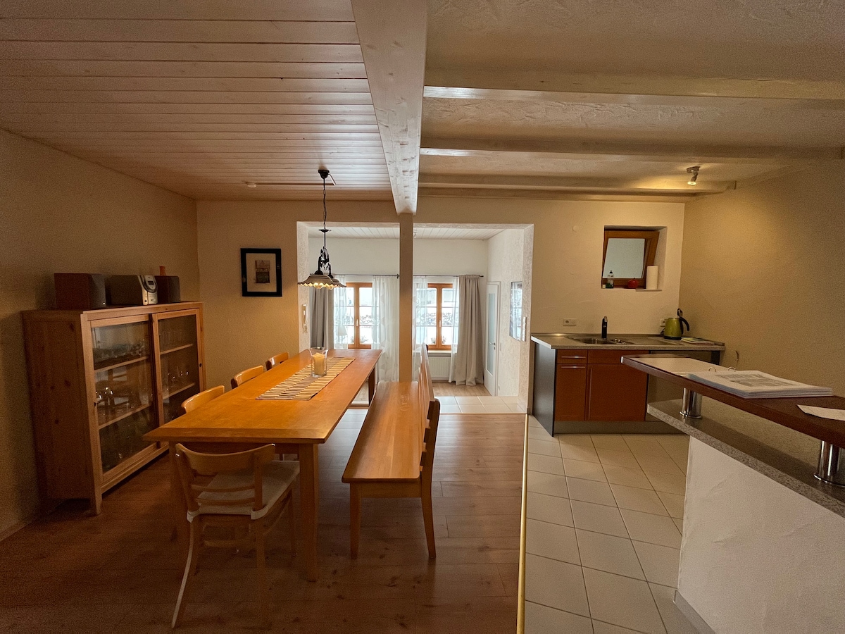 Ein Ort zum Wohlfühlen: Mit viel Liebe zum Detail eingerichtet, erwartet Sie ein Wohnbereich mit einem stilvollen Kamin, der an kühleren Abenden für eine angenehme wärme sorgt. Vom lichtdurchfluteten Wohnbereich mit Südausrichtung haben Sie einen guten Blick auf das Hasenhorn. Ein perfekter Ort, um bei einem Kaffee oder einem Wein die Seele baumeln zu lassen. Beste Lage für Erholung und Abenteuer: Ein idealer Ausgangspunkt für unvergessliche Erlebnisse in der Natur.