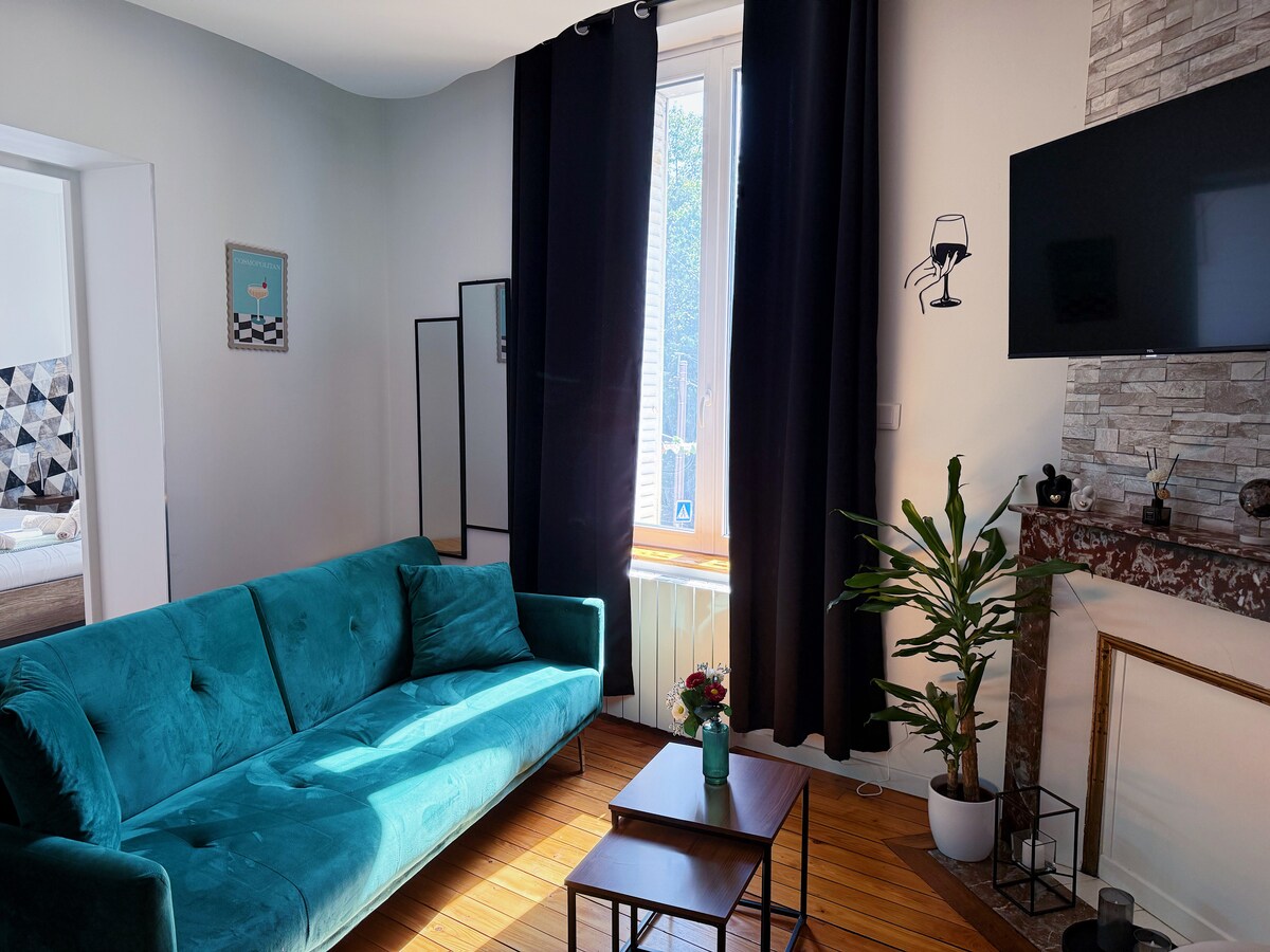 Denna mysiga lägenhet för 4 personer ligger bara en kort promenad från Marcel Picot-stadion, 5 minuter från Meurthe-flodens stränder och 15 minuter med spårvagn från berömda Place Stanislas, vilket ger dig det bästa läget för att njuta av Nancy i all sin prakt. Sovrum med dubbelsäng, stort vardagsrum med bäddsoffa, Wi-Fi, utrustat kök. Säng bäddad vid ankomst, handdukar tillhandahålls. Överraskningssnack vid incheckning. Superhost 4,79★ baserat på över 400 omdömen Din perfekta bas för att utforska Nancy.