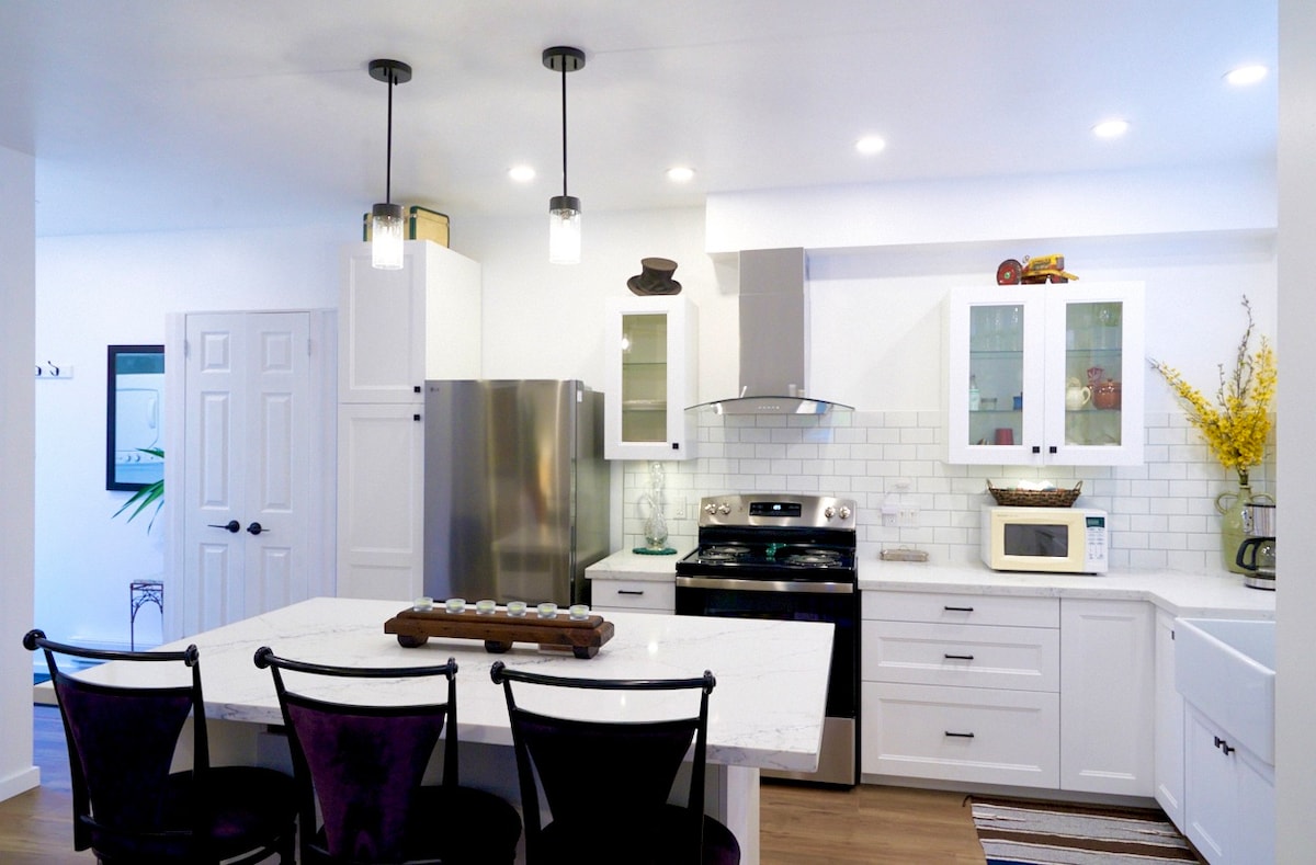 Vårt laneway house är ljust och rymligt. Huset har nyligen färdigställts och har praktiskt taget alla nya möbler och apparater och är ett bekvämt och bekvämt "hem hemifrån". Det är centralt beläget i ett härligt grannskap, några steg från flera bekvämligheter, inklusive restauranger, mataffärer, parker och tunnelbanan. Regleringsanmärkning: Huset har inspekterats för överensstämmelse med brandkoden. Utgångsvägar och nödnummer finns inomhus.