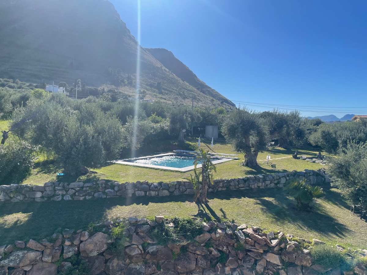 Villan ligger bara 3 km från Castellammare del Golfo och består av tre sovrum, två badrum med badkar och dusch och ett tvättstuga, stor matsal, ett kök och en mycket stor och vacker uppvärmd pool med hydro-massage. Poolen, med en vacker utsikt över havet, är alltid öppen men den är uppvärmd från MARS TILL NOVEMBER. Det fungerar mycket bra när utomhustemperaturen är mer än 15 grader.