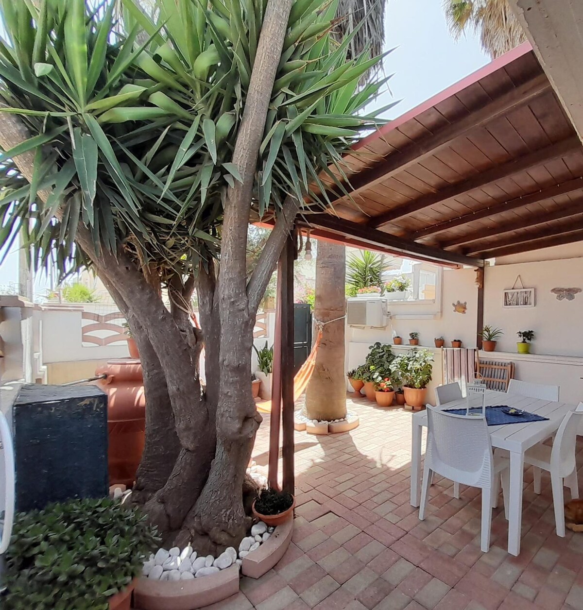 Inbäddad i lugn och ro en kort promenad från havet. Perfekt både för avkoppling och för att dra nytta av de flera bekvämligheterna några meter bort. Helt möblerad, utomhusbelysning och torra omgjorda stenmurar, privat väg, Lido, restauranger, pizzeria, trattoria och braceria några steg bort,allt från 20 till 150 meter. wi-fi och espressomaskin med kapslar. All-inclusive-pris, förbrukning av vatten, el, gas, villatjänster och skatter...Kontakt med anläggningarna i området för utflykter.