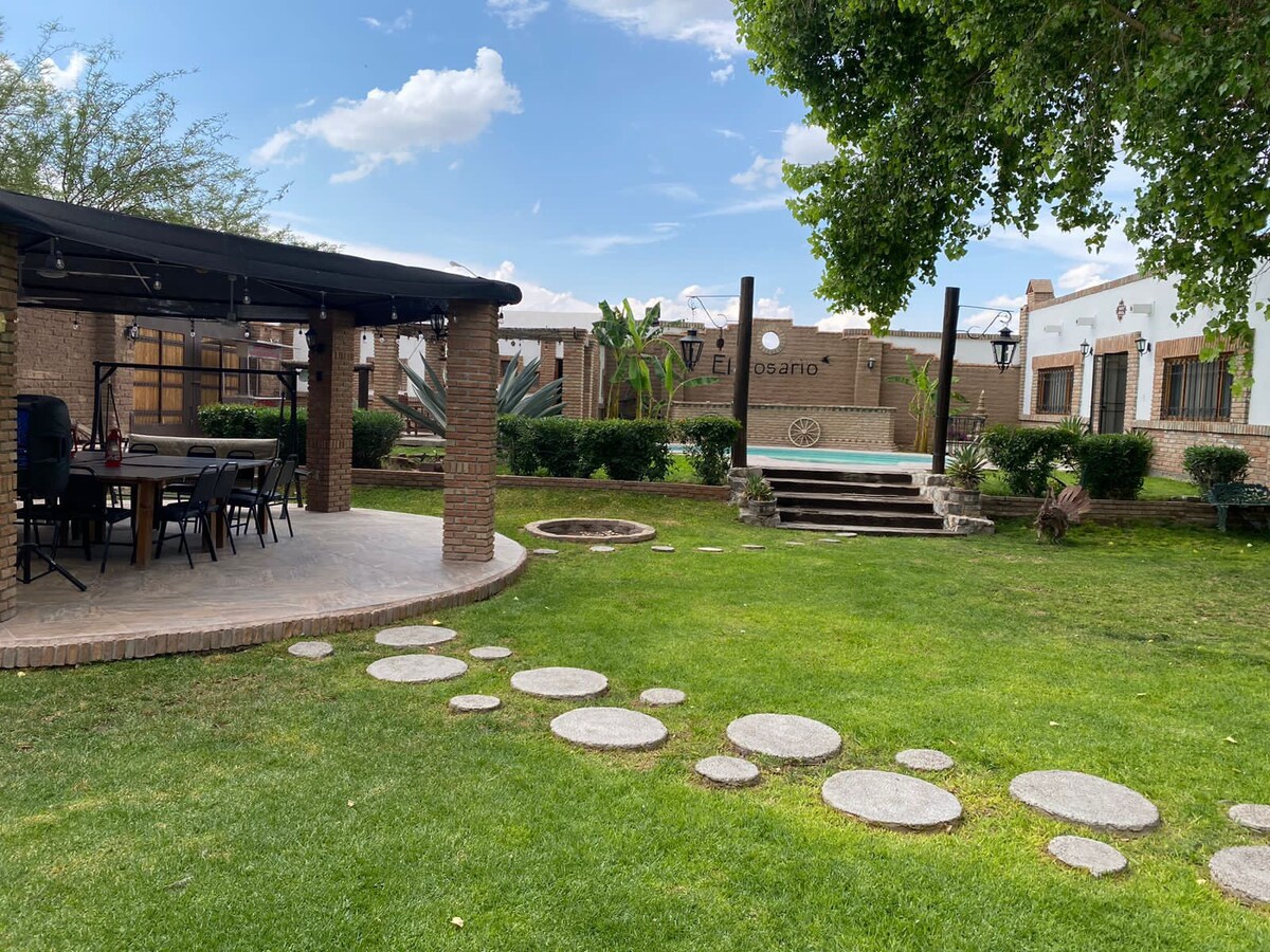Koppla av i denna lugna och unika stuga belägen norr om Torreon, nära UAE-stadion. Bara 10 minuter från staden kommer du att känna dig i lugnet i detta utrymme med pool, grill och en stor trädgård där du kan koppla av. Bekvämligheter pool, palapa, grill och delade trädgårdar. 10 minuter från Galerias Laguna 5 min från Play Padel Club 5 minuter från Padel ONE CLUB precis framför Club Club de padel.