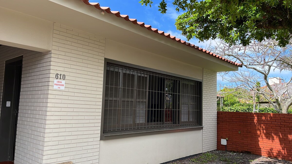 Hus med 3 sovrum, ett av dem är en svit. 500 m från stranden i Guarita Torres-RS. Stängd innergård med automatisk individuell grind. Larm och övervakning med kameror. Med wifi tillgängligt. 42-tums platt-TV.